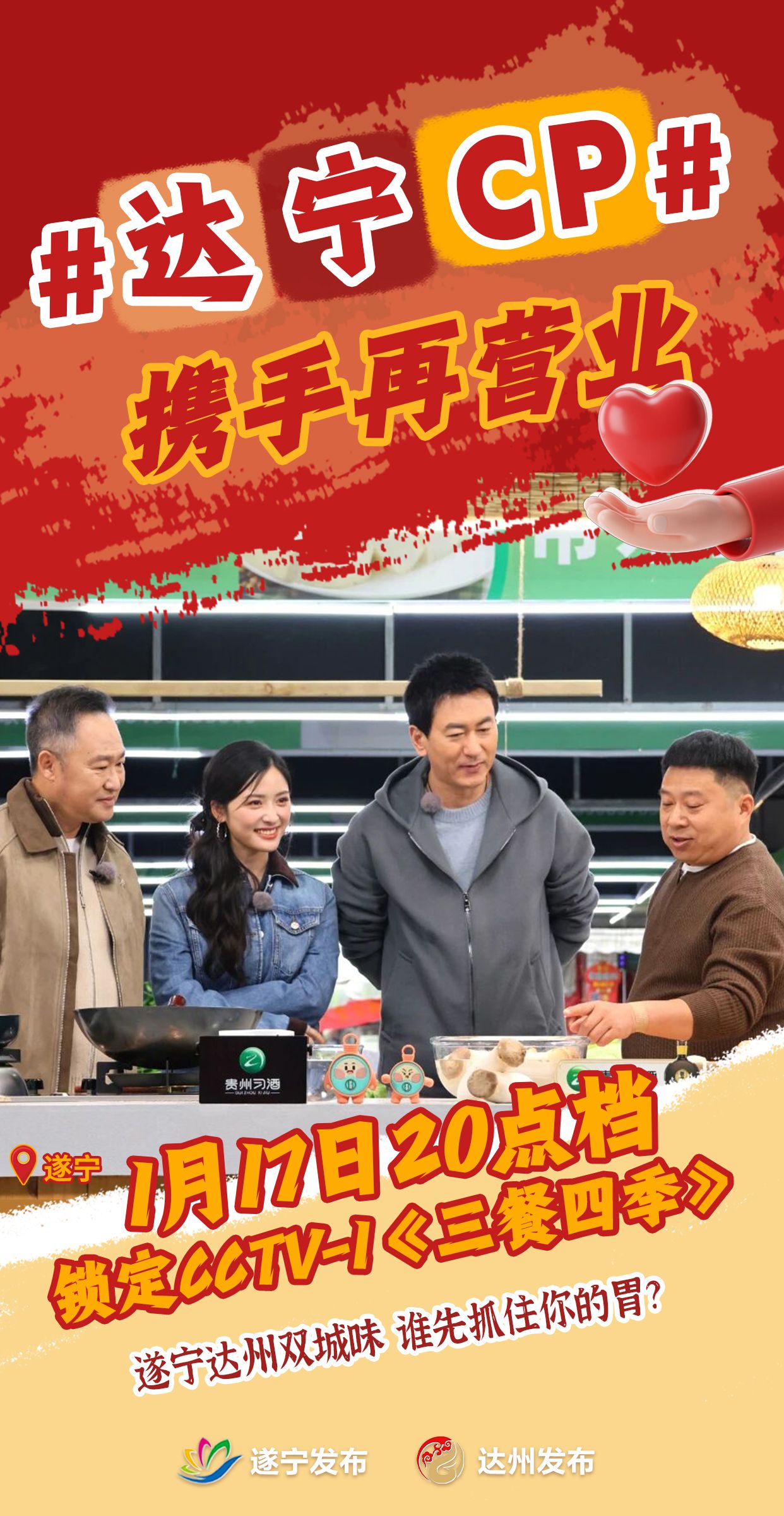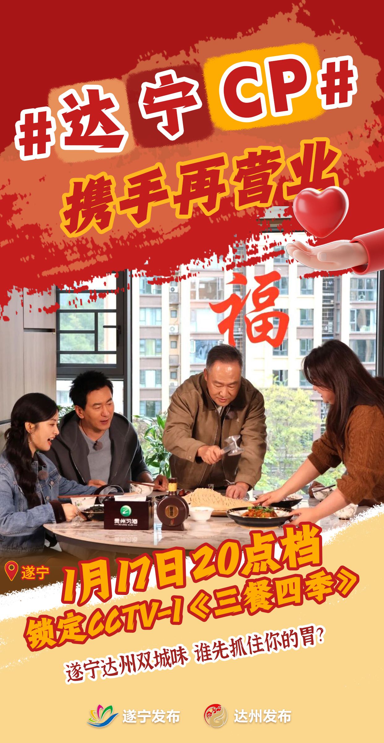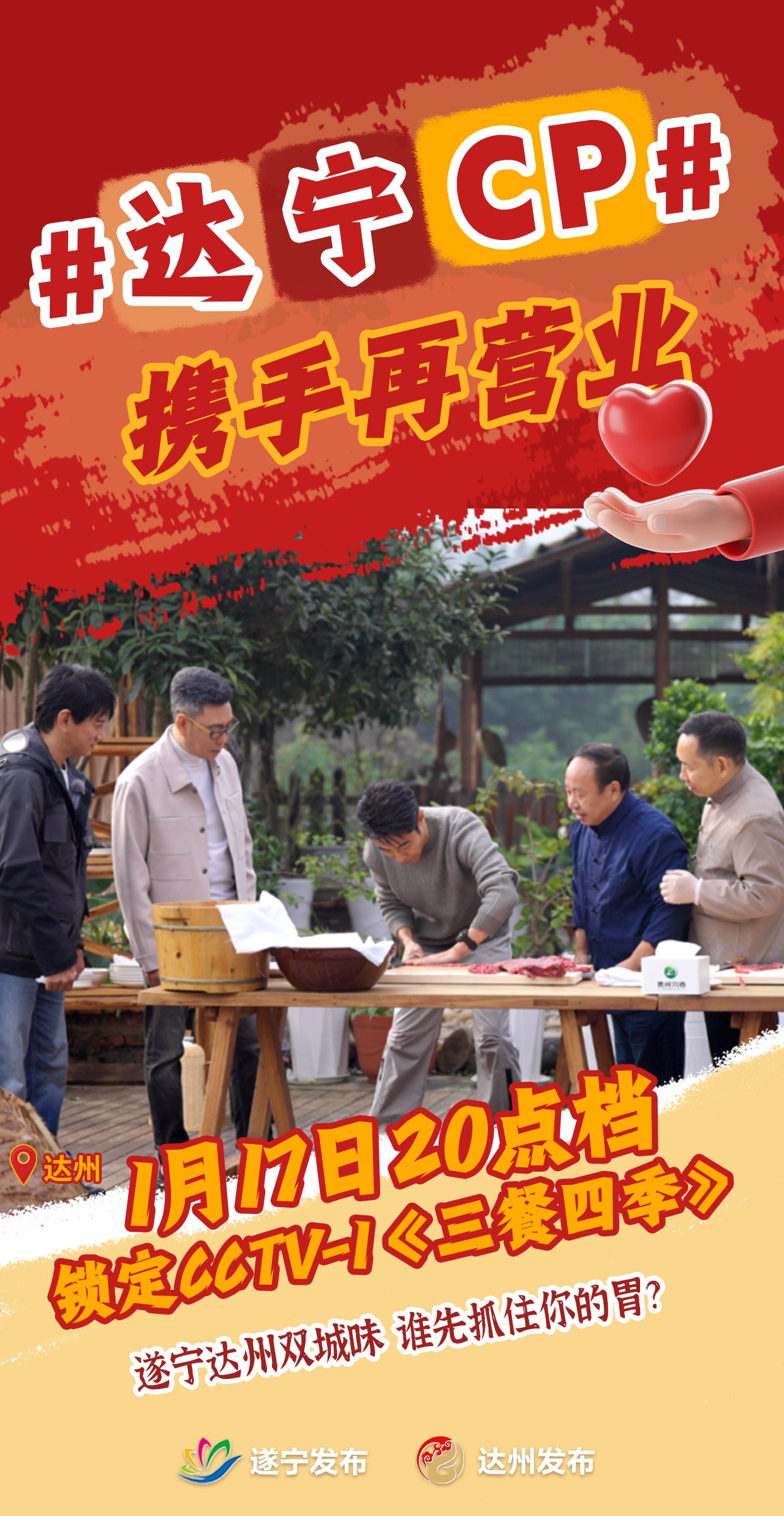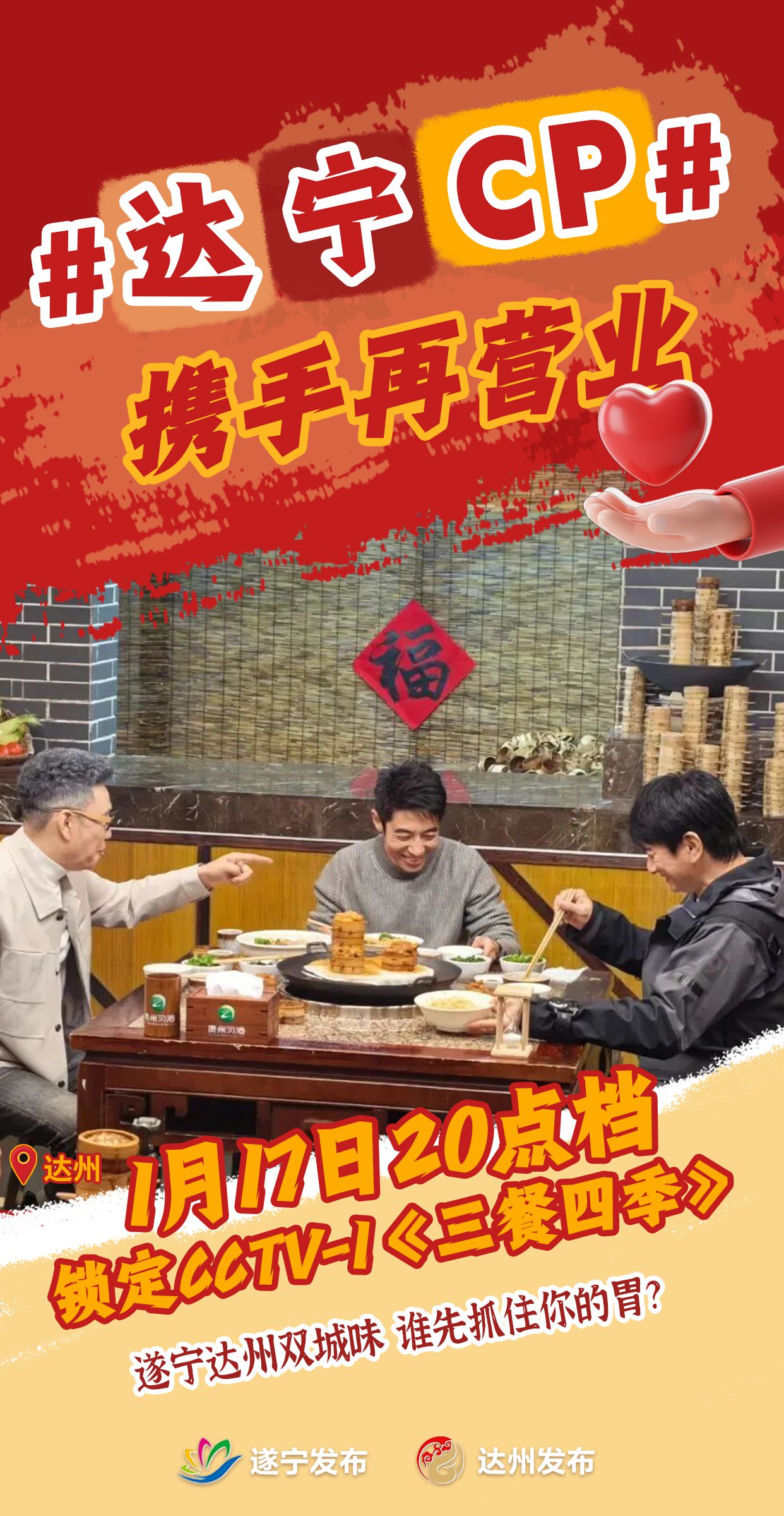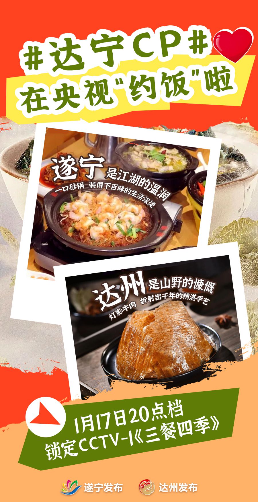 遂宁,是江湖的温润 一口砂锅,装得下百味的生活滚烫 达州,是山野的慷慨 灯影牛肉,折射出千年的精湛手艺本周六#达宁CP#将携手再营业1月17日20点档锁定CCTV-1《三餐四季》看遂宁达州双城味谁先抓住你的胃策划:林敏制作:白莲