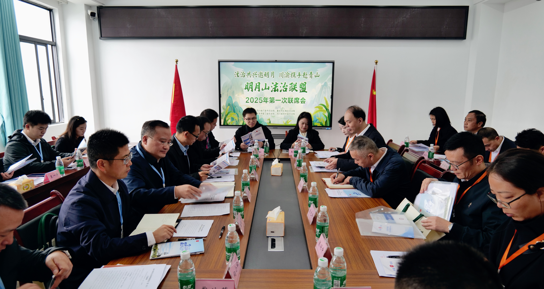 在风光秀丽的明月山麓,另一张法治协作网正悄然铺开。“自从有了‘明月山法治联盟’,我们跨区域开展法律宣传活动频率明显提升。”刚结束与重庆市垫江县司法干部视频会商的邻水县司法局局长古翰举,指着桌上被标注得密密麻麻的《“明月山法治联盟”合作共建协议》说。