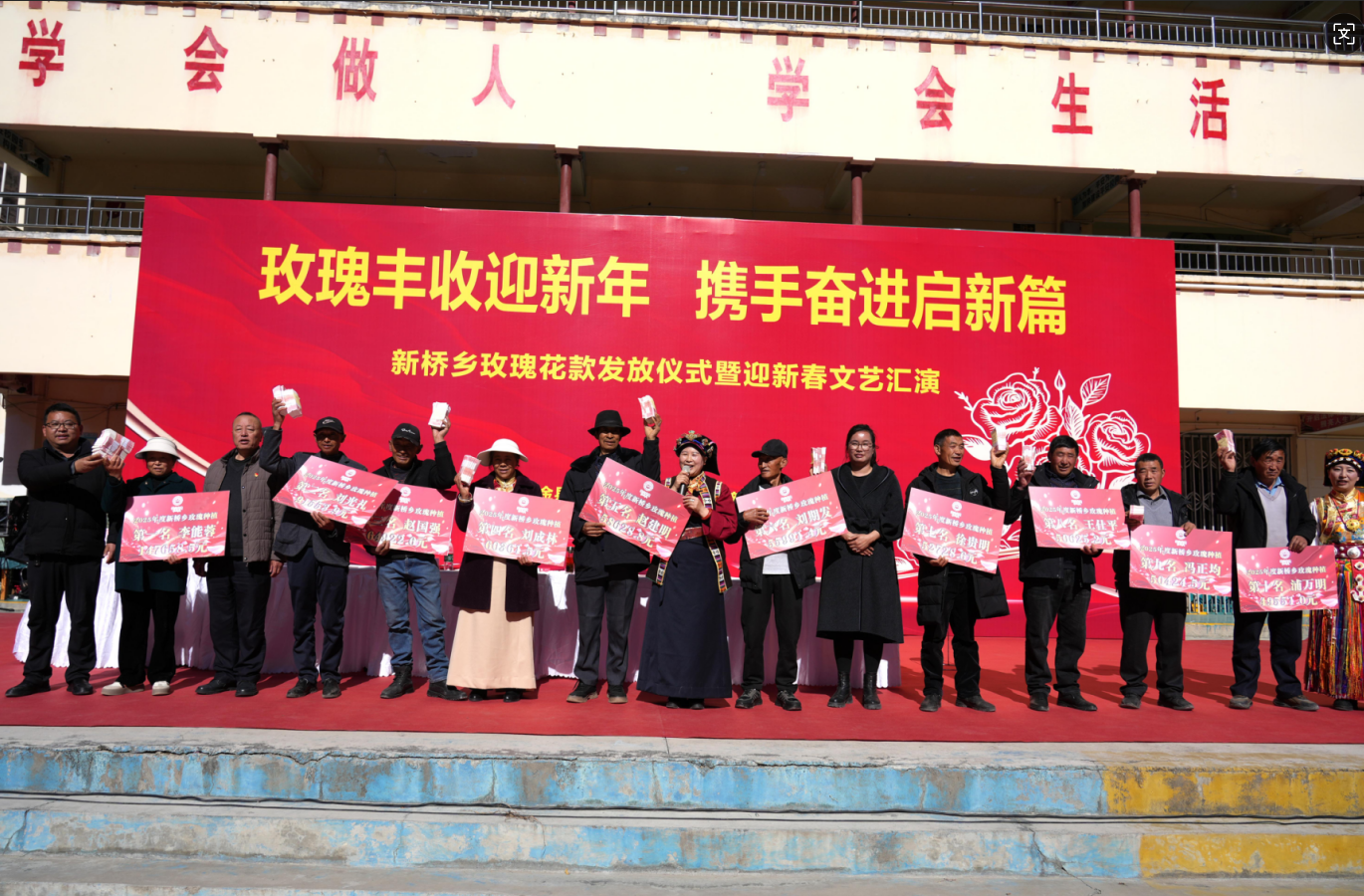 2月6日,小金县新桥乡举办玫瑰花款发放仪式暨迎新春文艺汇演,全乡玫瑰种植户与干部群众欢聚一堂,共庆丰收、喜迎新春。现场工作人员精准核对信息,将780余万元玫瑰花款有序发放到种植户手中,农户们满脸喜悦,纷纷表示将继续扩大种植规模。