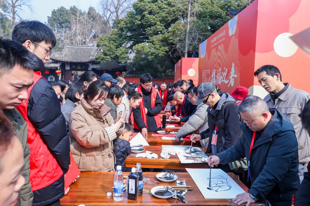 时近中午,寿苏会的文化暖流,自然融入了迎接新春的喜悦之中。启贤广场一侧,长桌铺开,红纸铺就,市县(区)书画名家现场挥毫,免费赠送春联。墨香四溢,求取春联的人们排起长队。书法家笔走龙蛇,新春祝福跃然纸上。