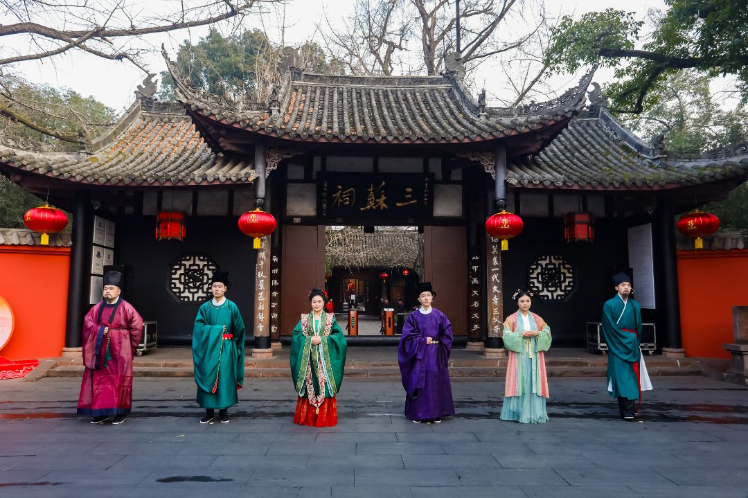下午,三苏祠祠堂区,沉浸式实景快闪剧《月映东坡·梦回眉州》再度上演。游客不再仅是观众,而是跟随“三苏”、程夫人、王弗等人的扮演者,沉浸式走进他们的故事人生。一步一景,皆是故事;一吟一唱,俱是文章。历史与故事从想象中“走”了出来,变得可触可感。