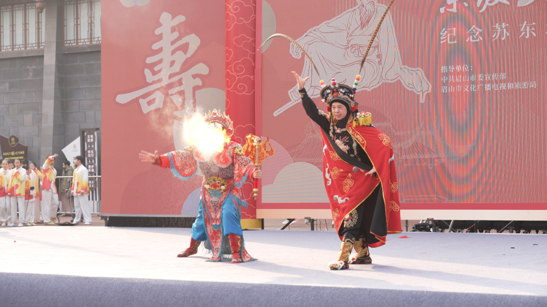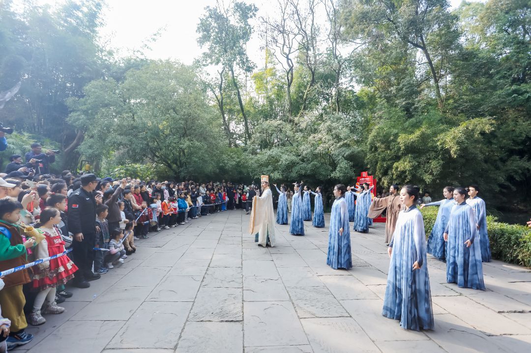 9时30分,启贤广场渐渐热闹起来。寿苏演出正式开场,川剧变脸、古典舞蹈、诗词吟唱轮番上演。