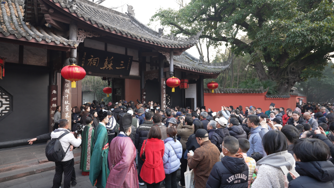 上午8时30分,悠扬古乐中,三苏祠南大门缓缓开启——“东坡989 同贺醉诗酒”纪念苏东坡诞辰989周年寿苏会拉开帷幕。这不仅是一场依循古礼的庄重纪念,一次跨越千年的风雅重逢,更是一幅传统与现代交融、敬仰与传承并进的生动画卷。来自四海的人们,带着对东坡的敬慕齐聚于此,在祠园的古韵今风中,共同见证文化薪火的传递,也迎接着新春的翩然而至。
