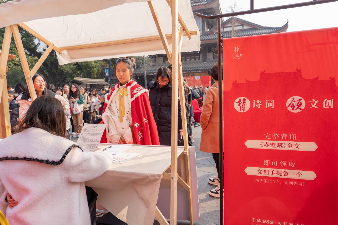 与此同时,趣味游园活动也开始了。游客手持任务卡,寻找散落各处的特定NPC(角色扮演者),通过对诗词、解字谜、答文史等互动任务,收集印章,兑换三苏祠特色文创纪念品。孩子们兴奋地奔跑,大人们也饶有兴致地参与。知识在游戏中传递,文化在互动中扎根。