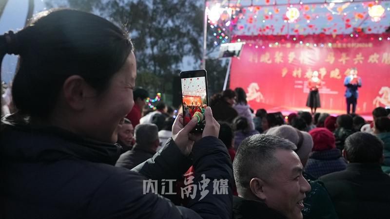 “那个穿红衣服跳舞的是我妈妈”“唱《大花轿》的那个是我姑爷”“那个挑扁担的婆婆住我隔壁”……大家乐于看节目,也乐于看台上的演员。许多村民掏出手机为自己的亲友、邻居录下表演视频,也有网络主播现场直播。