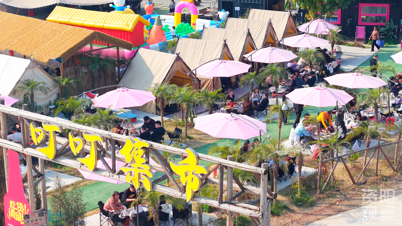 同样热闹的,还有沱江边的叮叮集市。帐篷星罗,江风轻拂,家人围坐烧烤,孩子奔跑嬉戏。这里没有传统的“年夜饭”,却有属于年轻人的“露营团圆”。从“回家过年”到“在路上过年”,资阳正在接纳一种更开放、更自由的新生活方式。