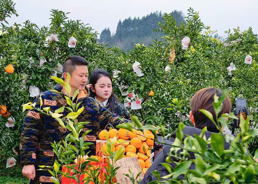 刘亮和搭档为巴中耙耙柑直播带货