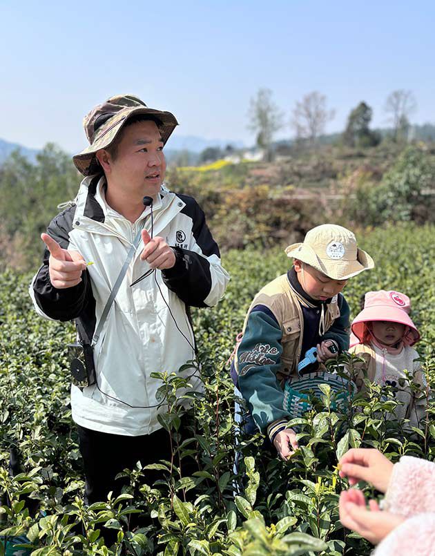 余安波向孩子们讲解采茶知识