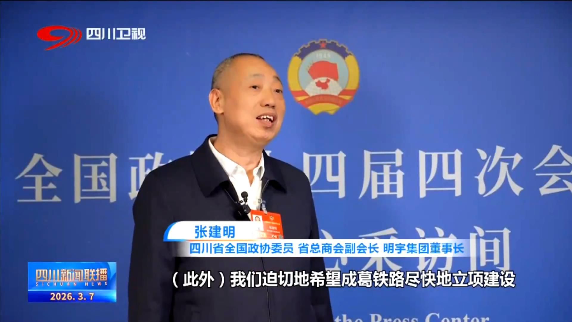 四川省全国政协委员、省总商会副会长明宇集团董事长 张建明:(此外)我们迫切地希望成葛铁路尽快地立项建设,这样有利于成都通过这条铁路到欧洲欧盟更加高效快速,更有效地打通了通过北向出境的堵点。