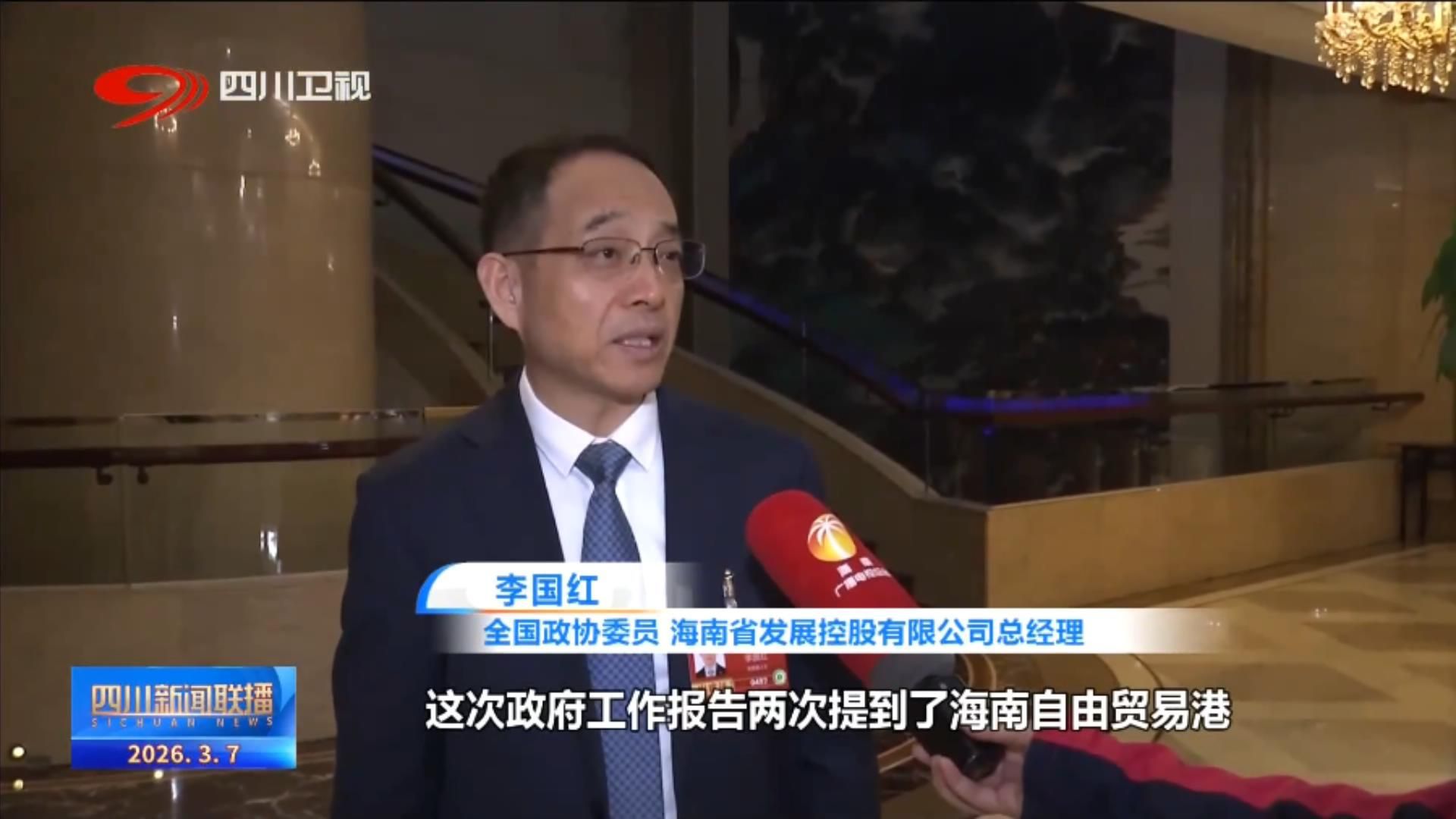全国政协委员、海南省发展控股有限公司总经理 李国红:这次政府工作报告两次提到了海南自由贸易港,我是希望能够形成“3+7+海南自由贸易港+N”的航空枢纽格局,最终就是想海南整个是航空枢纽,从而使海南对外开放度越来越高,从而真正成为新时代对外开放的一个重要门户。