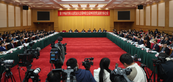 十四届全国人大四次会议四川代表团开放团组会议现场