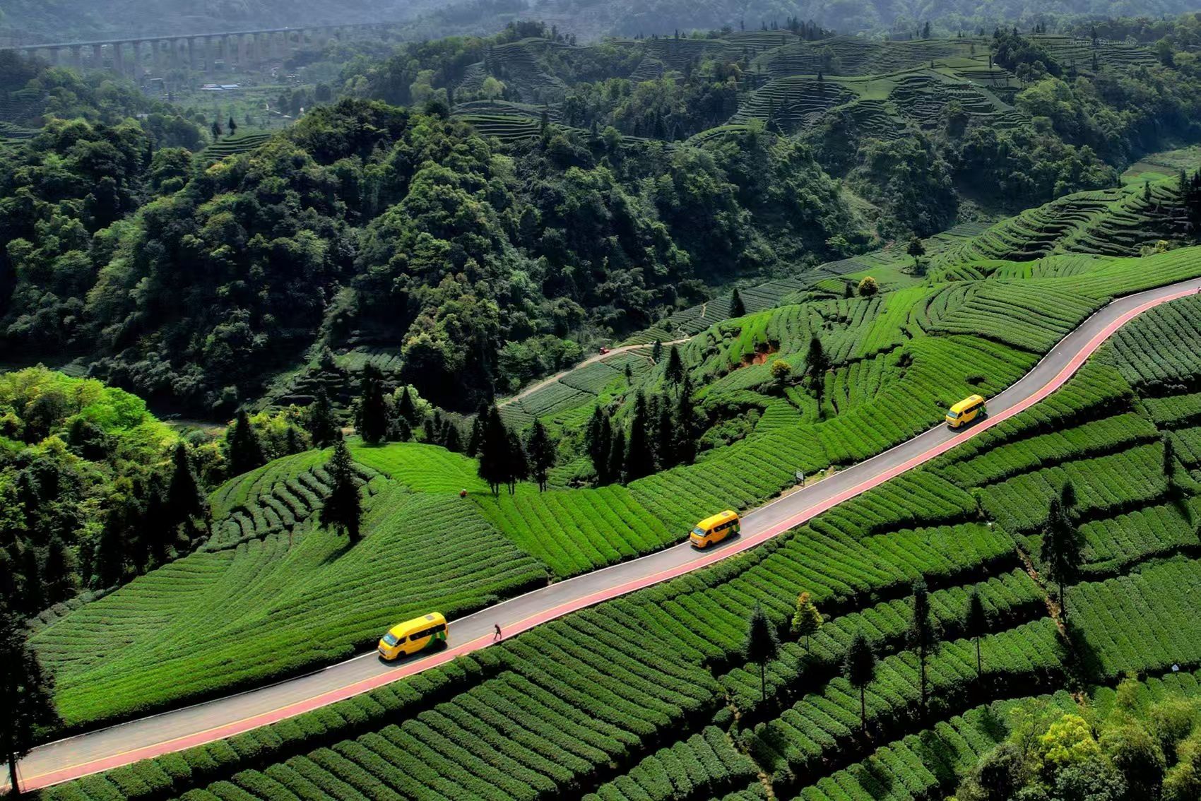 这条全长约150公里、宽4.5至8.5米的绿道,串联起蒙顶山、月亮湖等景区及39.2万亩生态茶园,曾入选“2019全国美丽乡村路”。今年春天,这条绿道还有樱花绽放,更引无数游客打卡。