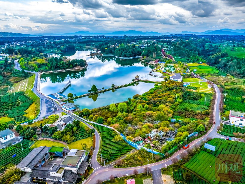 中国至美茶园绿道串联起蒙顶山、月亮湖、百丈湖等景区与39.2万亩生态茶园和民宿群。黄刚 摄