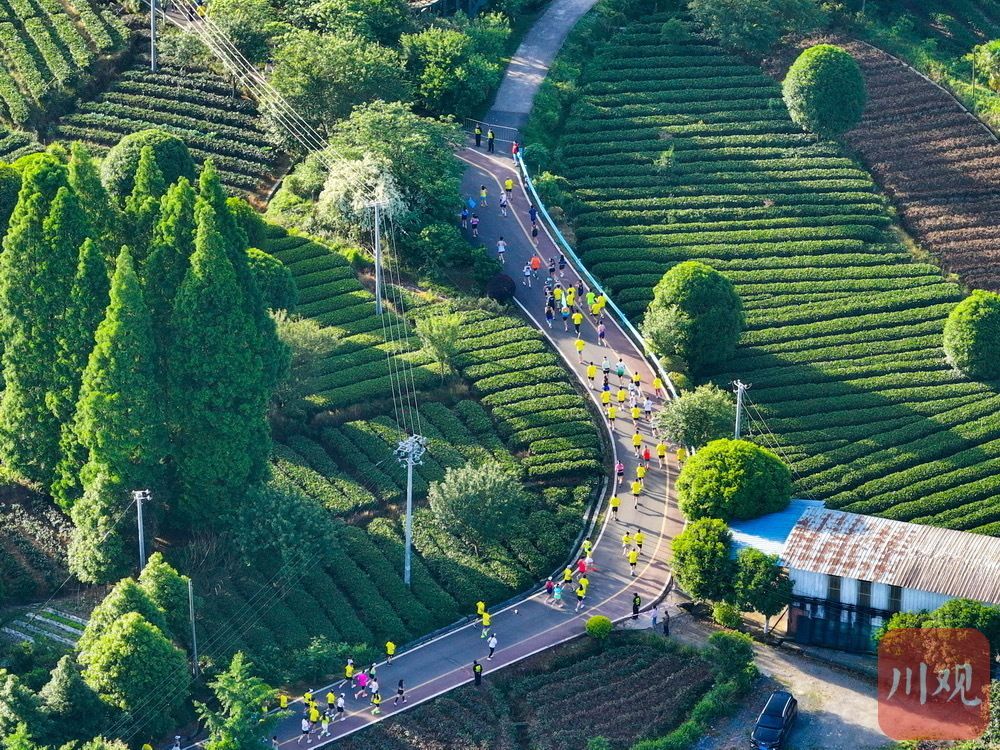 全国各地的选手在蒙顶山下的茶田参加“村跑”。黄刚 摄