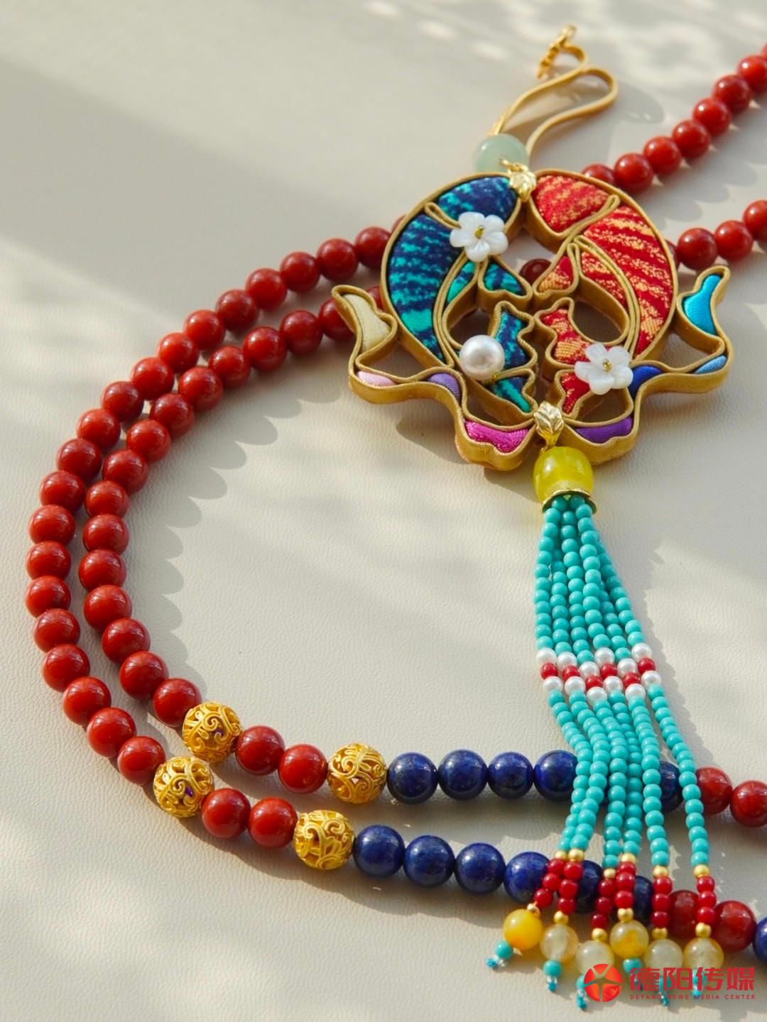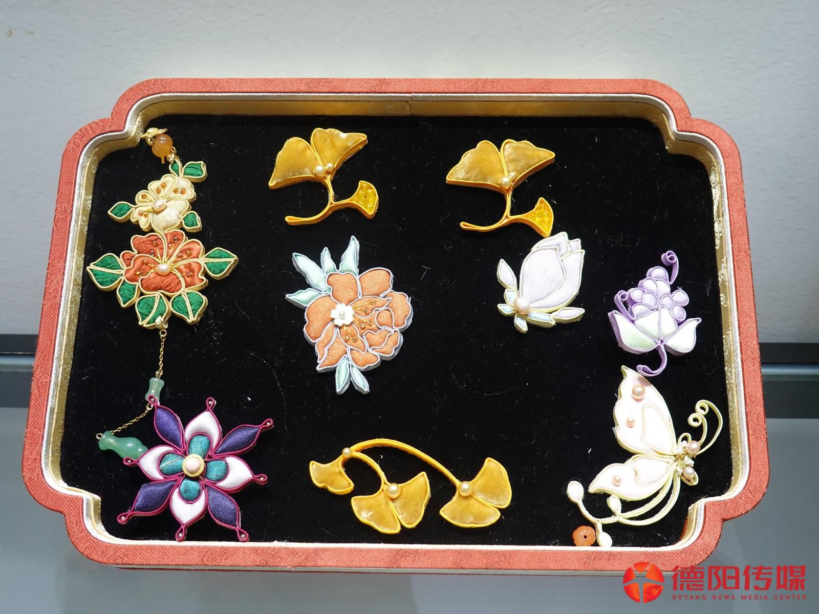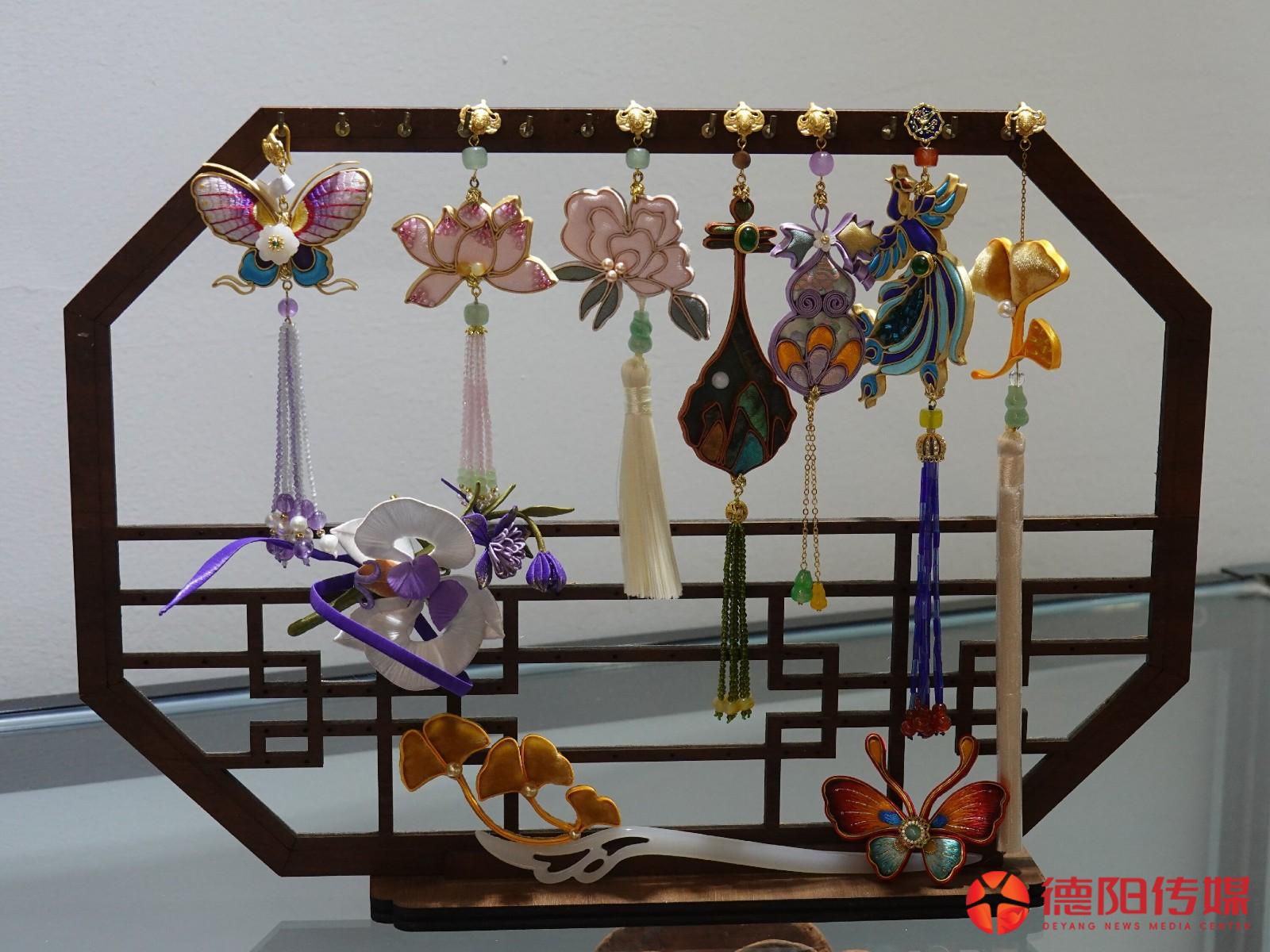 创业初期,宋丹丹一人要完成设计、打样、采购原料、制作、直播销售、打包邮寄等工作,常常忙至凌晨四五点,但她仍然坚持创新和原创设计。她常从传统纹样、生肖文化、日常生活细节中捕捉灵感。蝴蝶、葫芦等吉祥图案,马年生肖元素、德阳广汉的桃花意象等,都被巧妙融入产品之中。此外,她还融入了蜀锦、蜀绣,打造“双非遗”“三非遗”产品。凭借精湛的工艺与原创品质,她的作品多次入选敦煌文创,并与故宫合作开发了专属文创产品。