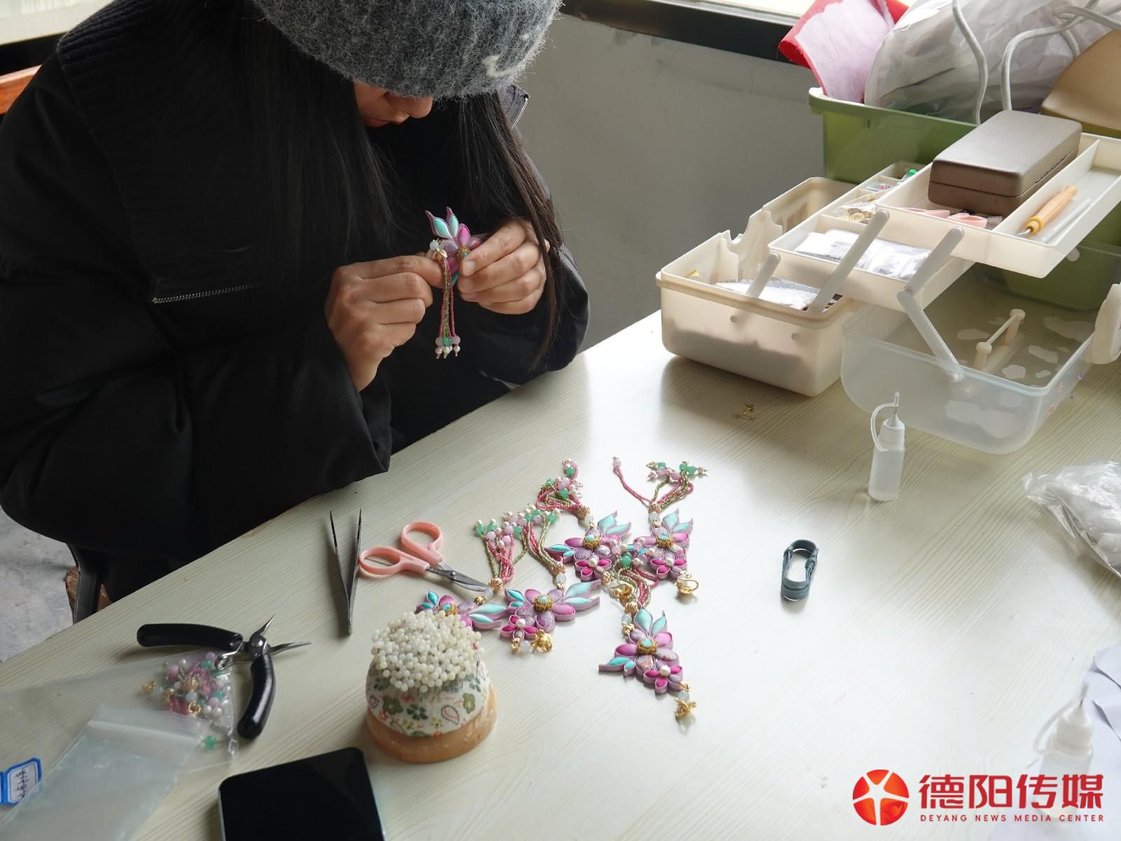 工坊也不乏年轻人,“90后”学员黄艳琴说,这份工作既能挣钱,也让她很喜欢,“看着自己做出来的精美盘扣,内心很有成就感。”