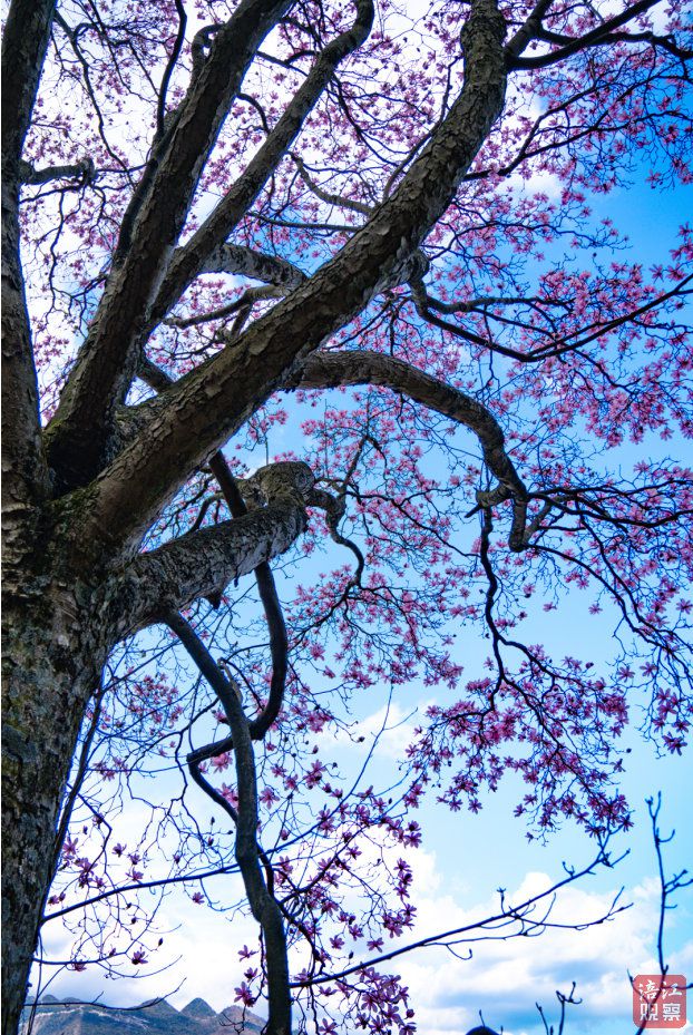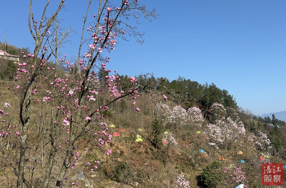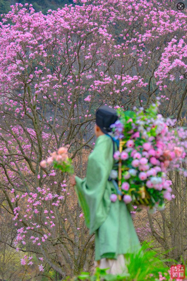 漫山遍野的辛夷花或娇羞半开,或热烈绽放,粉的温柔,白的纯洁,红的热烈,紫的典雅,万千花枝缀满枝头。