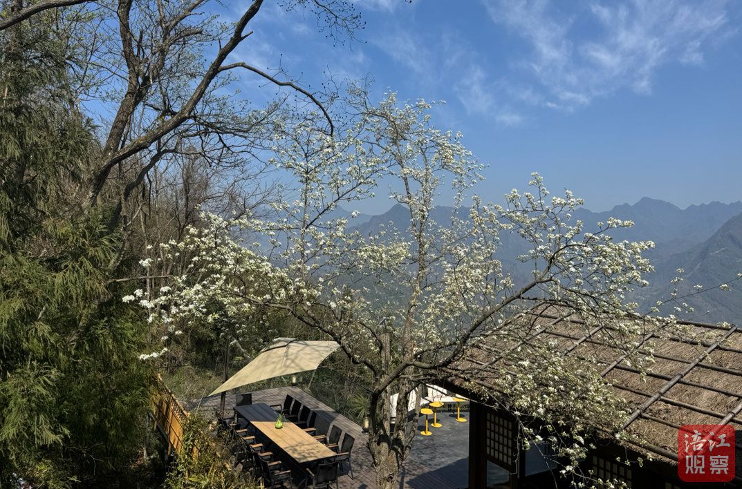 在距离辛夷花海不远的叙兰山见民宿院子里,三三两两的游客在百年老梨树下喝茶、赏花、拍照,品尝地道农家腊肉、辛夷花馒头、荠菜水饺等山野美食。