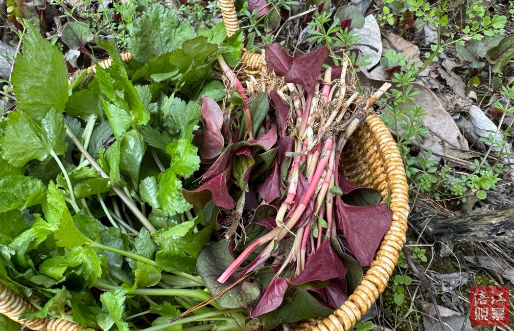 午餐后,游客许美跟随民宿管家到山坡挖野菜,折耳根、鸭脚板、清明花、野葱……提着满满一篮野菜,大自然的馈赠成了赏花行的“意外之财”,“赏花+采摘”的沉浸式体验,让许美和朋友们乐而忘返。