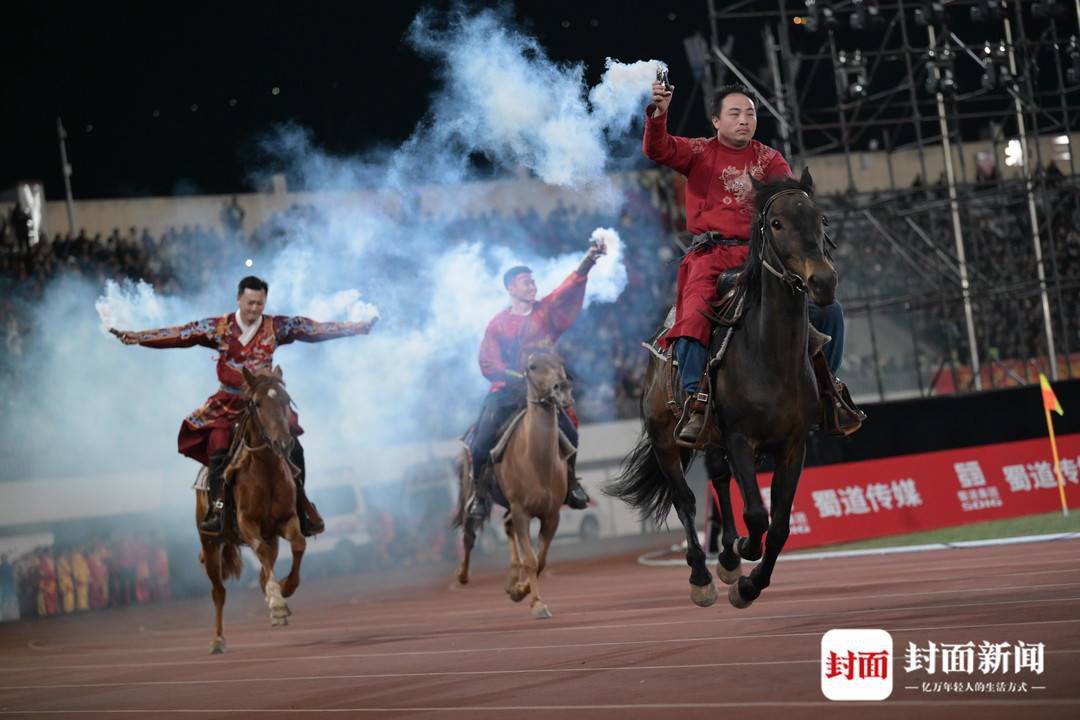开赛仪式上的巴蜀元素成为亮点。开场秀“旗开得胜”马术秀中,六位骑手身跨骏马列队绕场,象征“川超”开启荣耀新征程。开场片《马力全开》浓缩了全省21市州球队在分区赛阶段的奋战瞬间。启幕表演《四海同歌》以戏曲为纽带,融汇大木偶、蜀绣、年画等巴蜀非遗元素,实现传统艺术与赛场热血的深度融合。