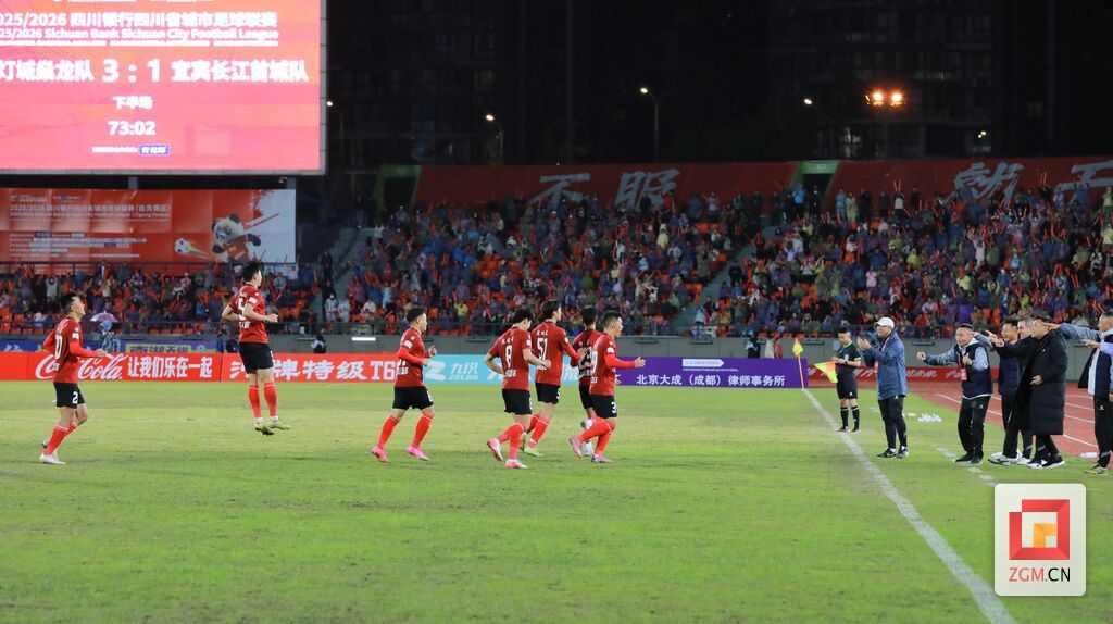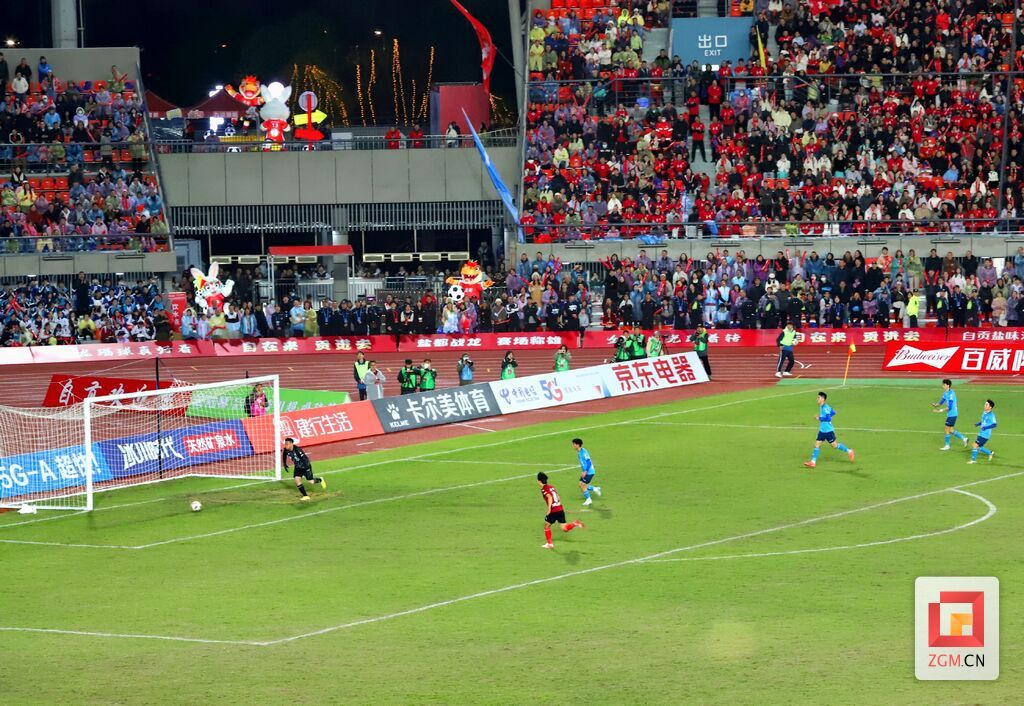 3月14日晚,南湖体育场内外热情涌动。随着终场哨响,比分定格在3:1,自贡灯城燊龙队力克宜宾长江首城队,取得川超决赛阶段“开门红”。这场万众期待的“川南德比”,让千年盐都为之沸腾。