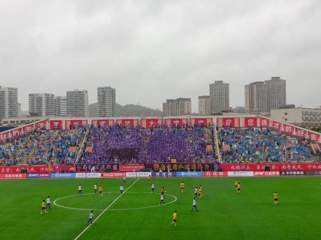 场上激战不止,场下温暖同行。看台上那片耀眼的紫色海洋,成为寒雨中最动人的风景。尽管冷雨浸透衣衫,球迷方阵的呐喊从未停歇,挥舞的围巾、铿锵的战鼓、整齐的歌声,汇成了对家乡球队最深情、最坚定的支持。