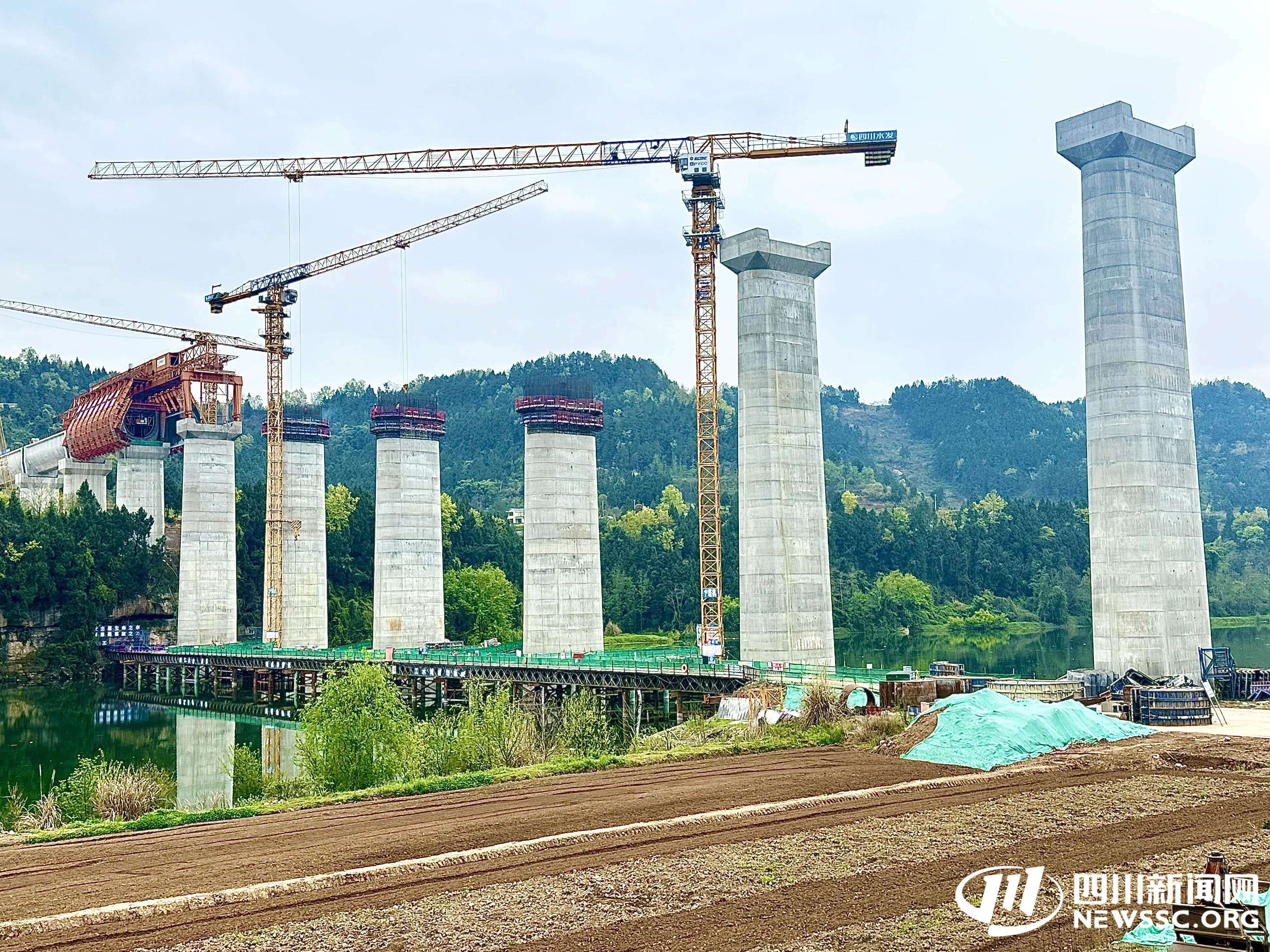 从黑龙滩向北,苍溪县亭子口灌区工程建设现场,机器轰鸣,渡槽浇筑有序推进。