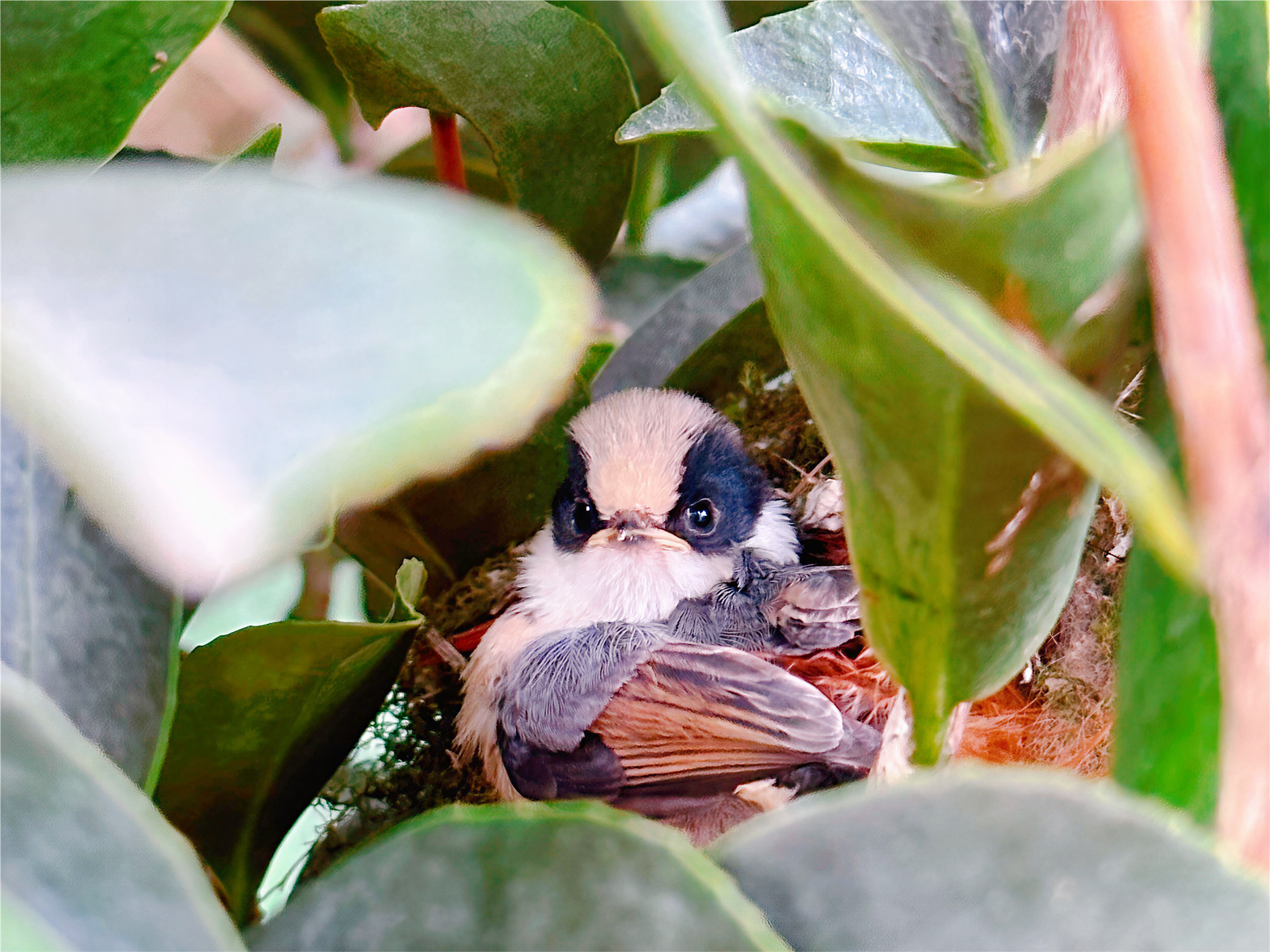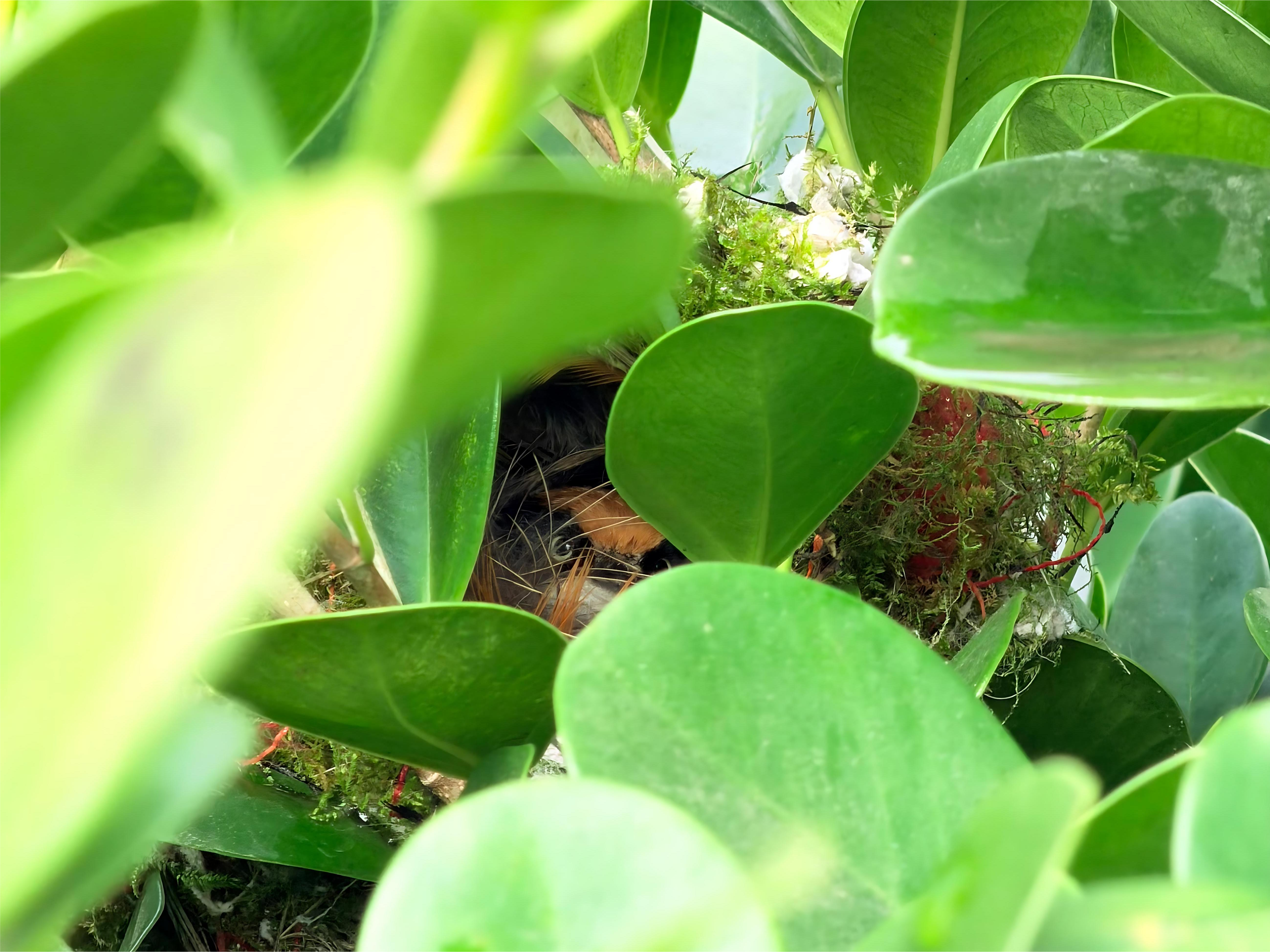 本以为只是一场短暂的相遇,没想到今年3月,暖春提前而至,这对红头长尾山雀竟如期归来,还将新巢筑在了庭院离窗户更近的小叶榕树上。“它们一来就开始忙碌,衔来细草、鸡毛,还会用蜘蛛网加固巢穴,比去年来得更早、更用心。”陈先生笑着说,如今他每天都能隔着玻璃,清晰观察到山雀夫妇的育雏日常。