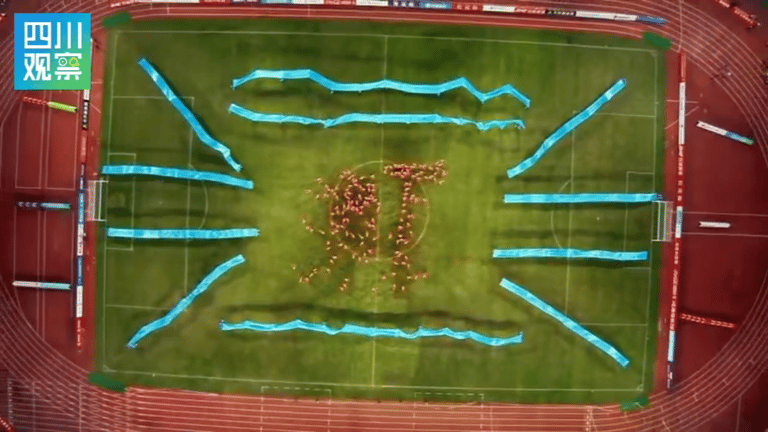 打头阵的《盐都狮魂震川超》堪称王炸!400名乡村少年集结,非遗醒狮、九龙喷火、功夫扇轮番上阵,气势拉满。队伍中,一群来自五宝中学醒狮社团的孩子,利用课余、寒假集训,只为在家乡主场为“燊龙”助威。带队老师陈迁说,孩子们虽紧张却兴奋,训练辛苦但进步显著,满心期待为家乡球队打call。