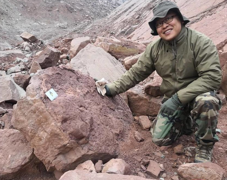 昭觉,古生物学家在垮塌的岩石上,发现了鸭嘴龙类足迹。
