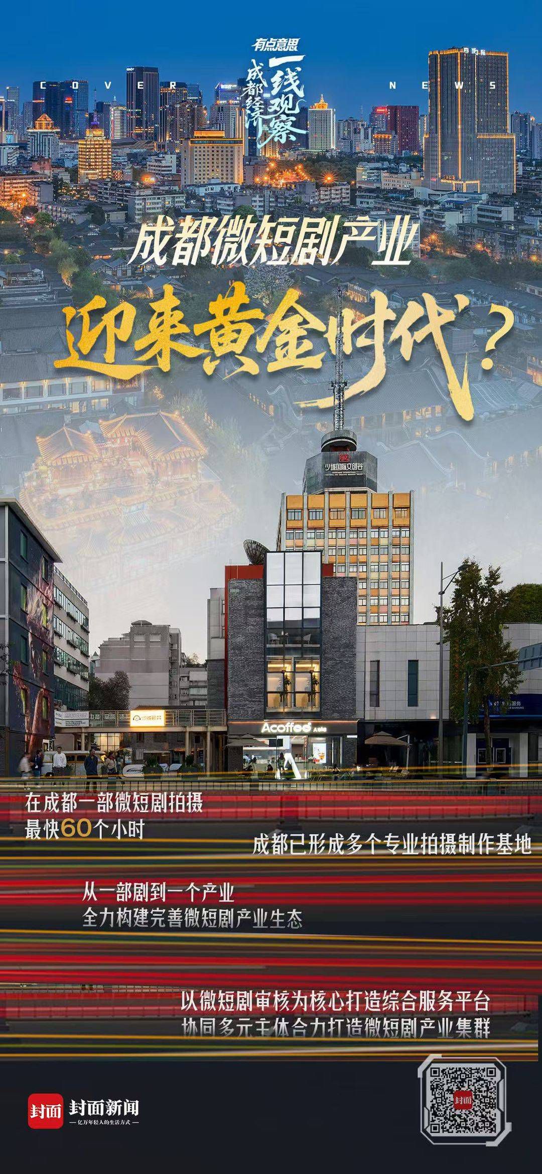 此外,“四川省广电局微短剧少城国际文创谷审核服务点”即将在成都市青羊区运行,将加快普通题材微短剧成片审核流程。这意味着,从剧本到成片,从拍摄到上线,成都正在构建微短剧的全链条服务体系。