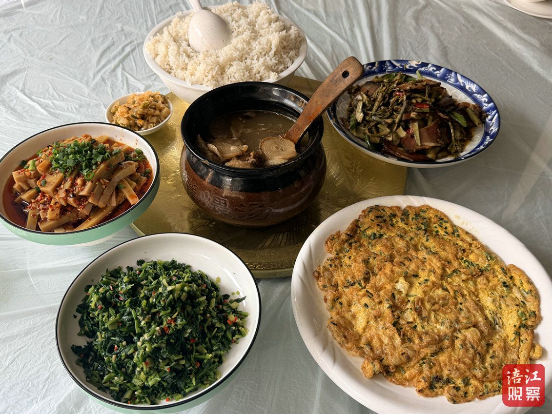 采摘的乐趣只是前奏。中午时分,神木寨的羌家餐馆里座无虚席。凉拌折耳根、野葱煎蛋、刺龙苞炒腊肉、清明花馍馍……一道道充满野味儿的菜肴被端上桌,满屋子都是山野的清香。