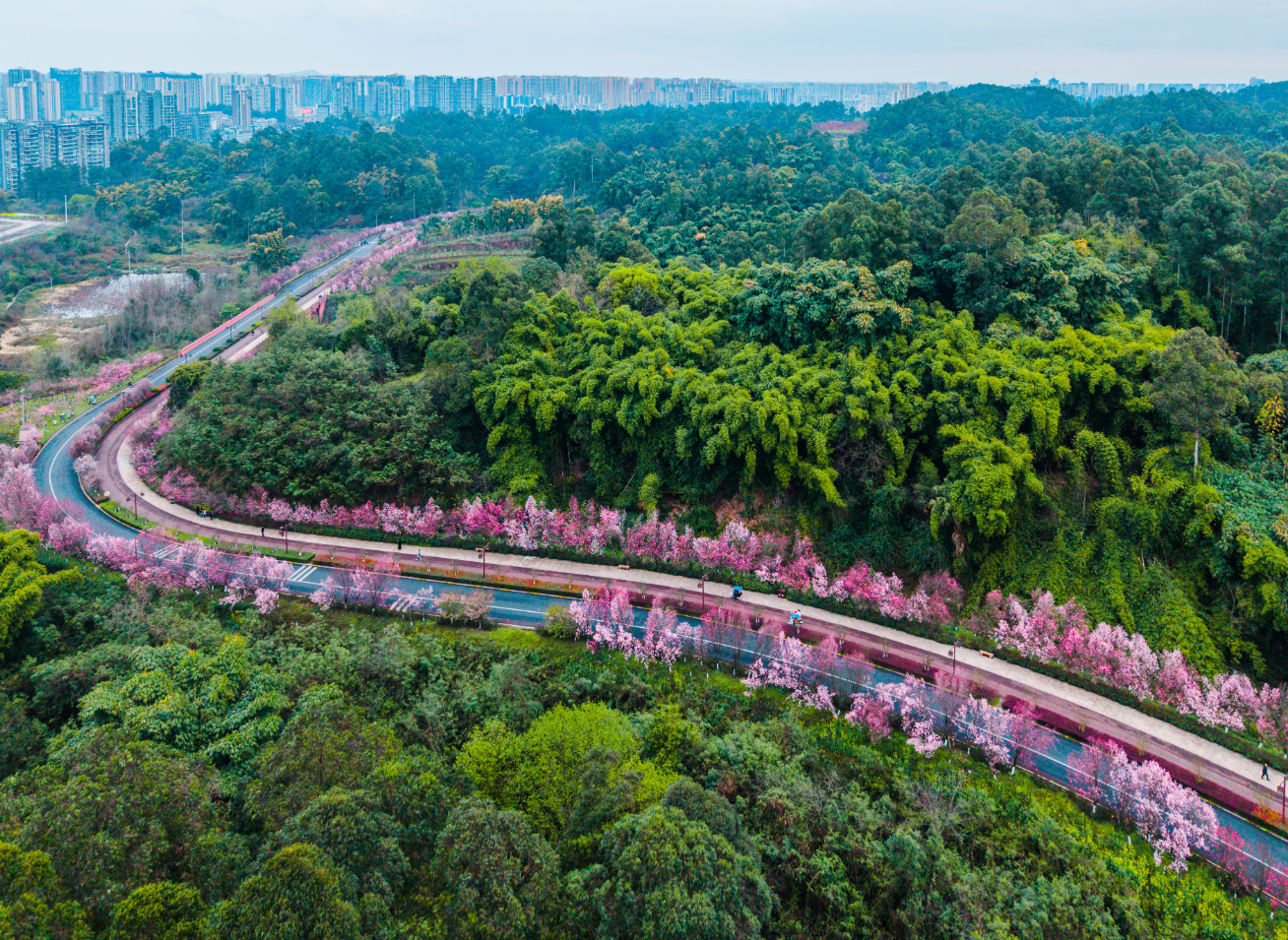 春日的嘉州绿心公园内,林木葱茏、鸟语花香,绿道蜿蜒于青山绿树之间,市民们悠然漫步、踏青游玩,尽享这宜人的自然风光。