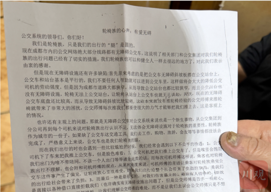 这根筷子后来敲出了《小小的我》的电影名场面——投诉公交车司机。2015年,龚苏遭遇公交车拒载。他没有选择沉默,用筷子敲出一封很长的投诉信寄给相关部门,信的第一句已经开始像诗歌表达:“我们是轮椅族,只是我们出行的‘腿’是圆的。”