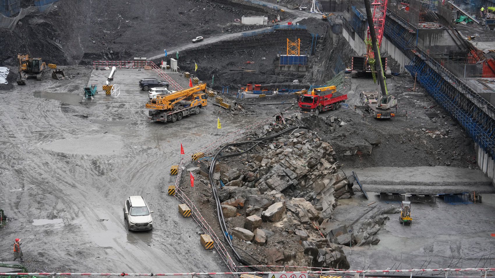 两河口抽水蓄能电站主厂房建设现场。
