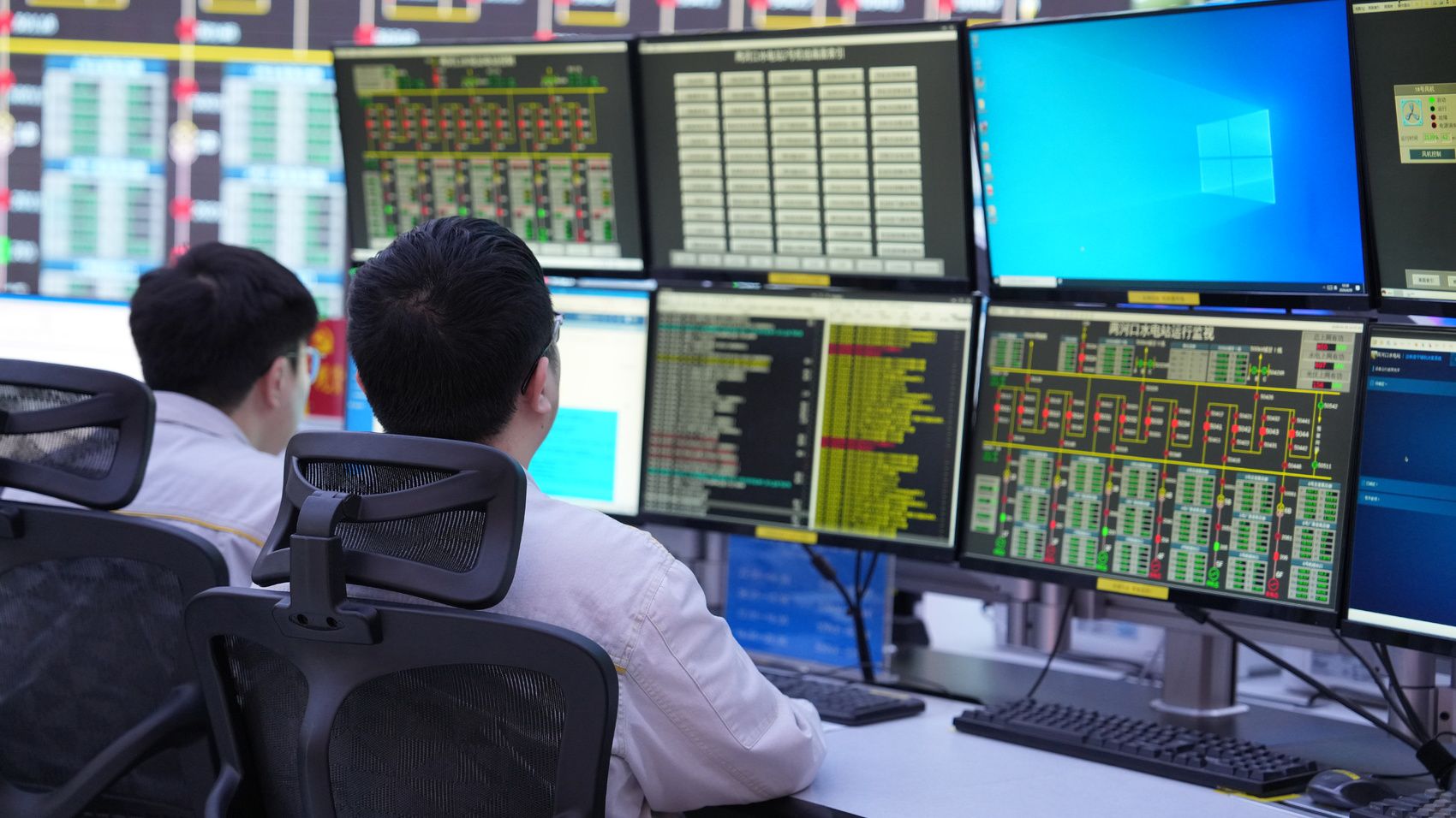 两河口水光互补控制中心,工作人员正在监测实时数据。