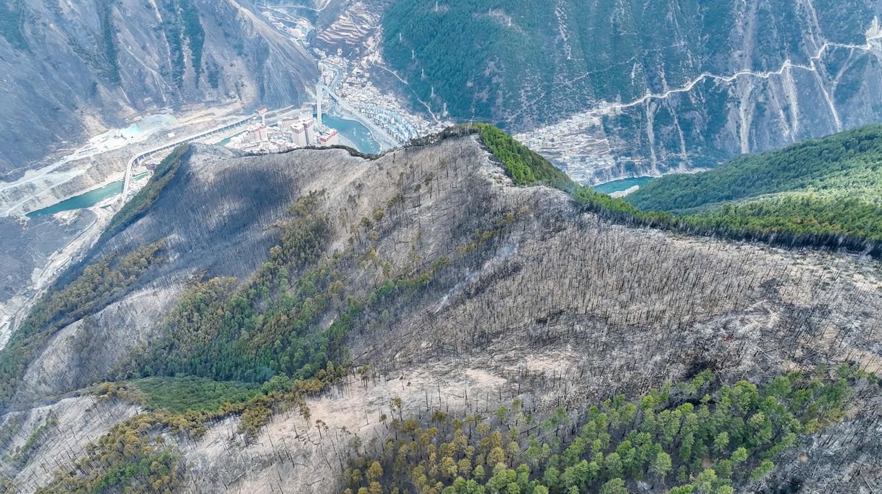 近处山脉为1号火场所在区域。陈旻翔 摄