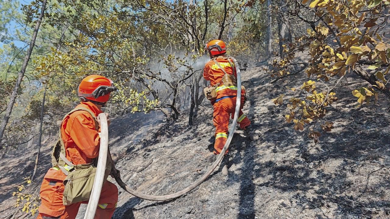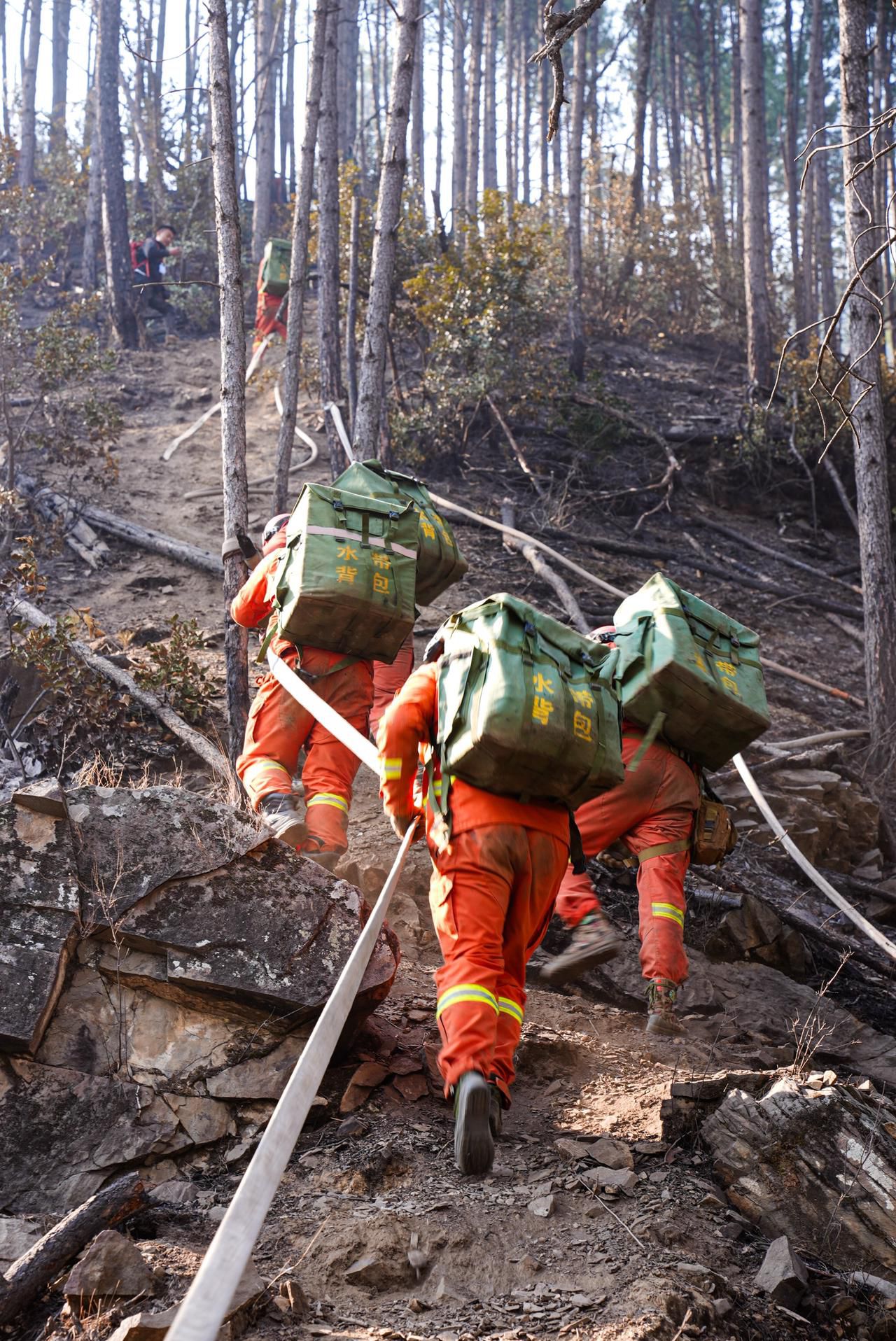 救援:4公里水带接力清理烟点