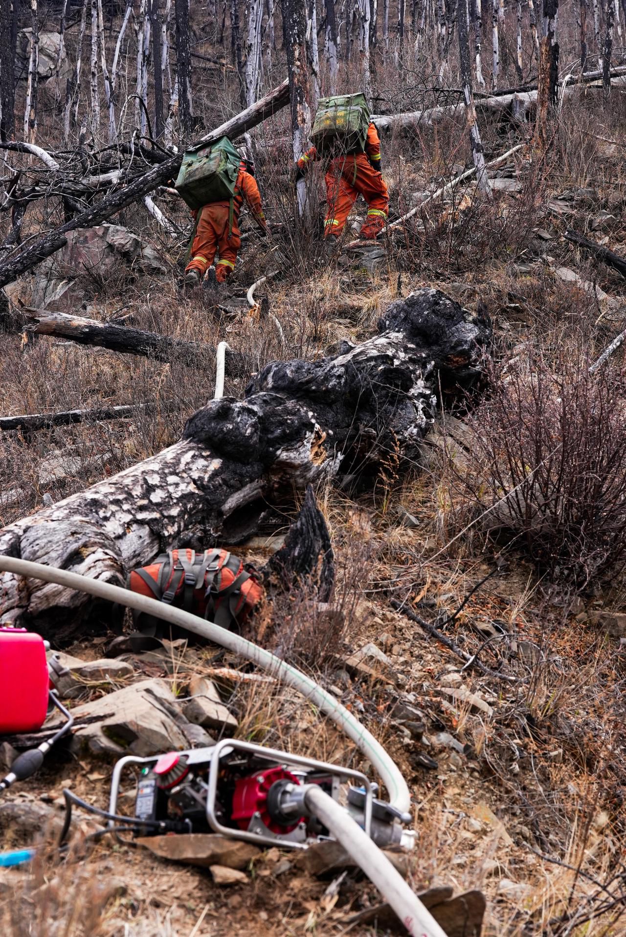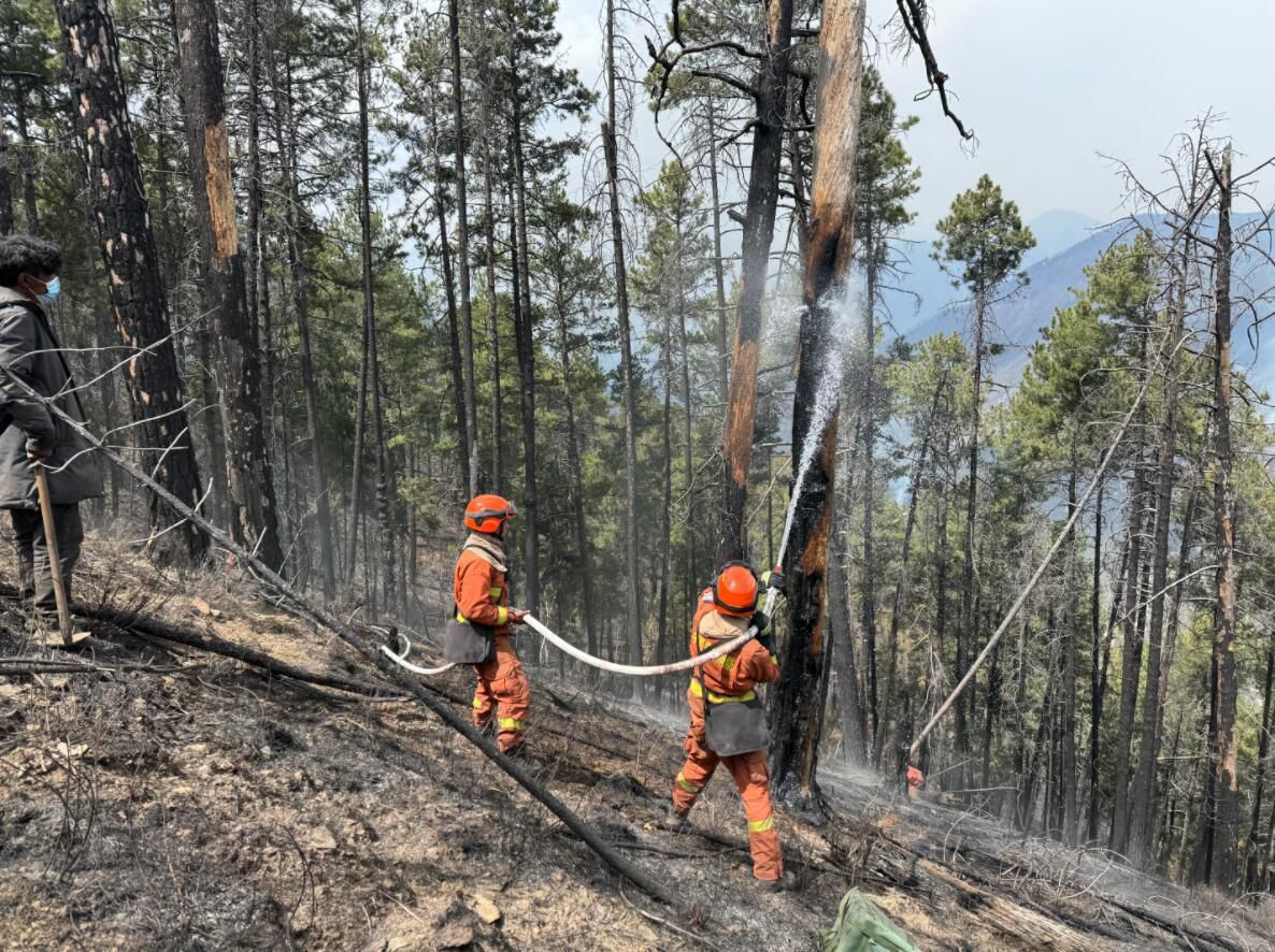 水带和水,他们看得比命还重。3月16日凌晨4点,王健东带领炉霍县森林草原专业防灭火大队54名队员赶到雅江县呷拉镇白孜村火场,从山脊往下扑打。“事发突然,水还没及时抽上山,我们用的是铲子和打火扫把。”王健东解释说,1号火场清理烟点,就是靠这些水带和水,队员们这次把水带背到山顶,还要下山再背第二次。