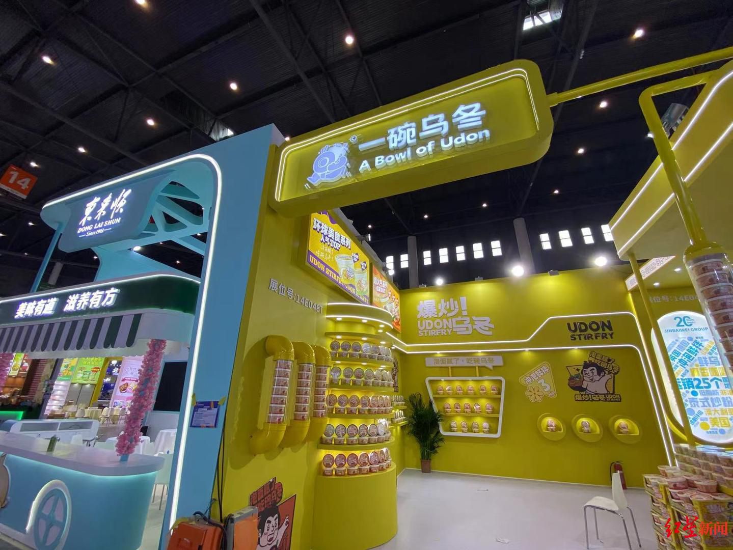 无论是应急储备、户外运动,还是午间便餐,“没时间”“太麻烦”一直是消费者的痛点。福建盛耳食品有限公司带来了冻干馄饨、冻干粥等方便产品,加入热水几分钟后,就能得到热气腾腾的一餐。“冻干脱水减少了细菌和微生物的生长,延长食品储存时间,风味也可以得到保留。”展位工作人员介绍,产品主打常温保存,为方便食品提供了更多选项。