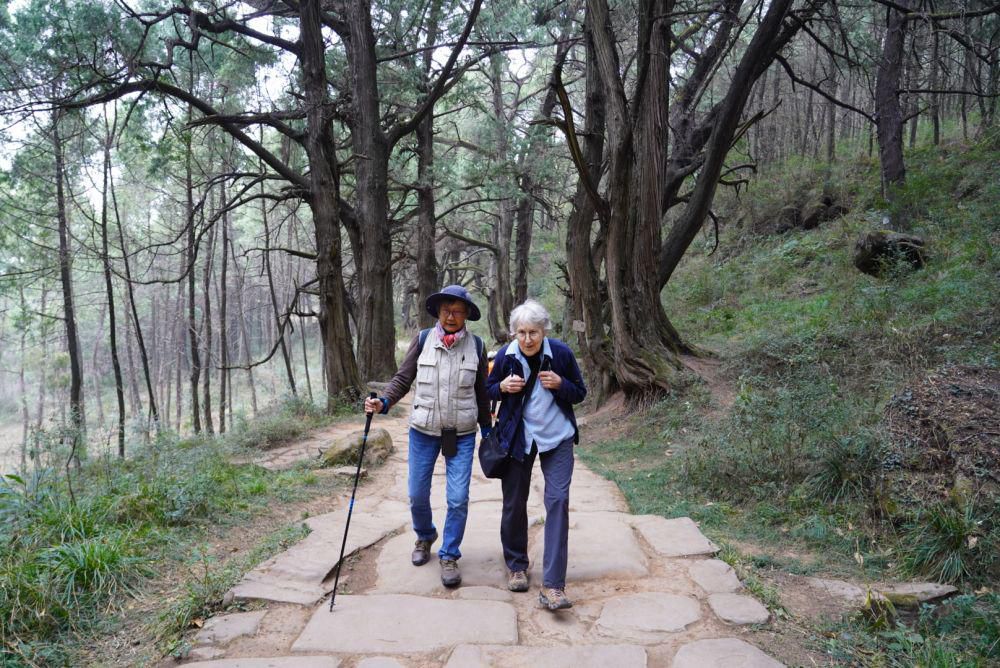 阳光从高大优美的树冠中投射出明暗交织的光影,千年古柏荫蔽的石板路一直延伸到看不见的山坡上。乍暖还寒的初春,81岁的美国女士贾和普第24次走在这条有着上千年历史的古蜀道上,满头银发在一片苍翠中格外显眼。