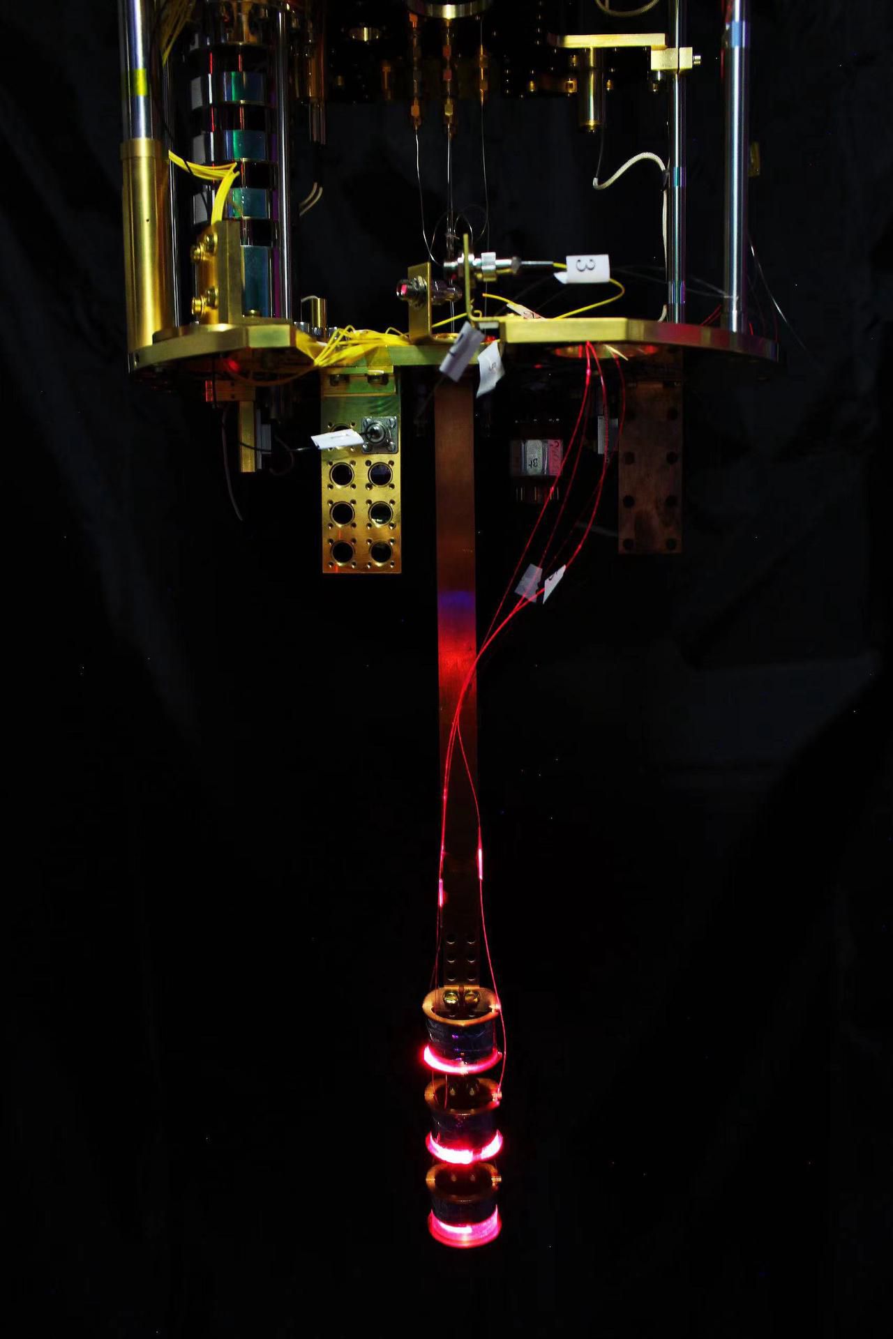 电子科技大学信息与量子实验室团队研制的掺铒量子存储系统内部图。
