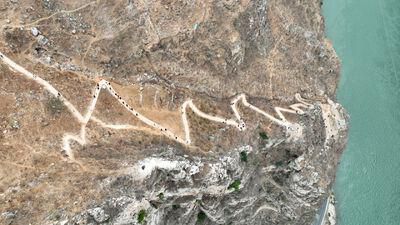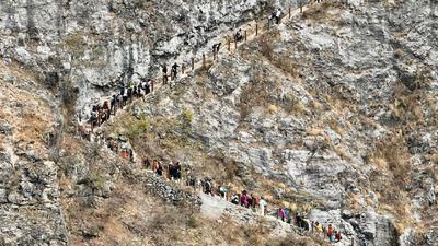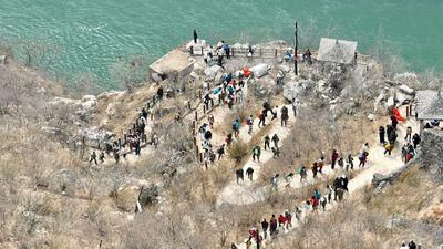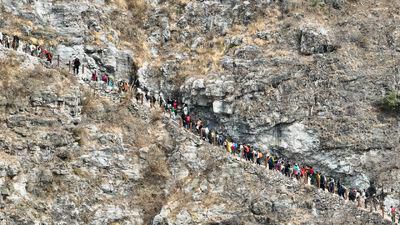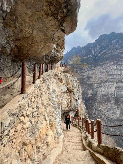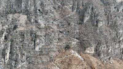 通往古路村的骡马道长约3公里、垂直高度近1000米,沿着绝壁弯弯曲曲。