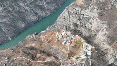 雅安市汉源县永利乡境内的大渡河峡谷,绿松石般水面的大渡河蜿蜒在狭窄的隘谷间,北岸的绝壁上隐约可见一座村庄——古路村。