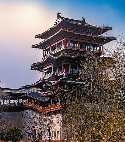 “为体现时代发展,确保功能适用,锦云楼在设计时将斗拱、门窗等进行简化提炼,以层叠的线条组团替代斗拱、以全玻幕墙替代直棱窗等,形态简洁又不失风格。”成都世园会执委会建设管理部专职副部长杨敏向记者介绍设计理念。