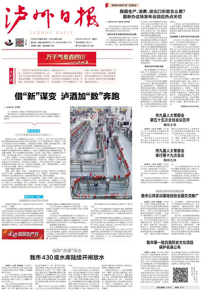 《泸州日报》3月27日头版推出相关报道。
