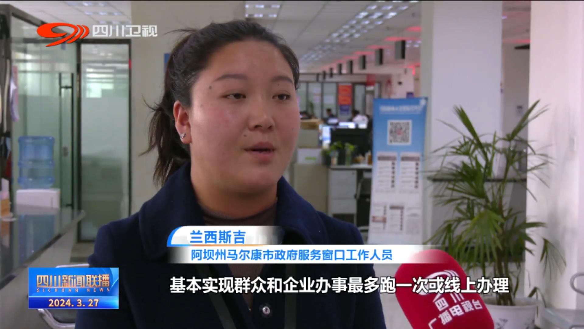 阿坝州马尔康市政府服务窗口工作人员 兰西斯吉:已基本实现群众和企业办事最多跑一次或线上办理。下一步我们还将打造“能办事、快办事、办成事”政务窗口。
