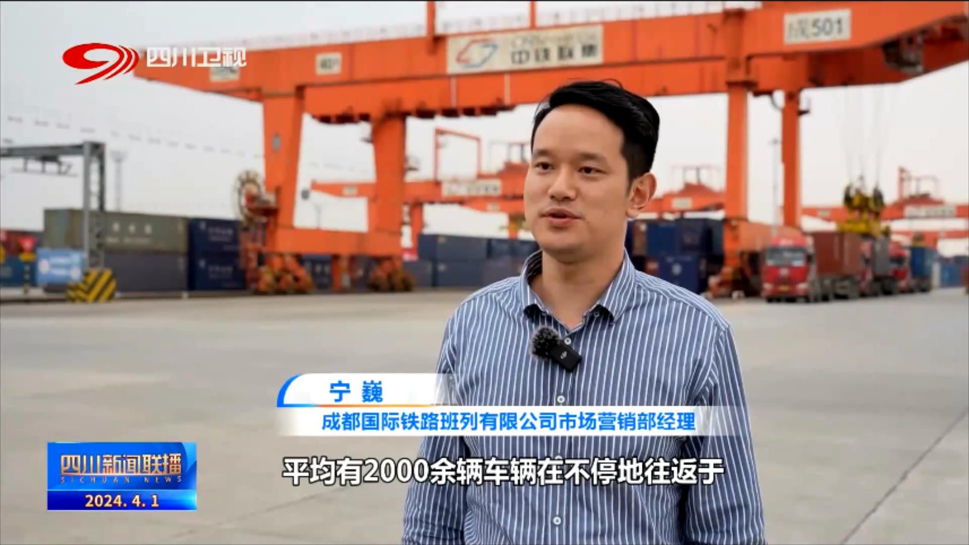 成都国际铁路班列有限公司市场营销部经理 宁巍:每天有十余列,班列到达和发运,平均有2000余辆车辆在不停地往返于中心站和外面进行集装箱的运输和拖车的一个短驳业务,我们出口的新能源汽车已经出口到中亚以及中、欧洲和俄罗斯等国和地区。