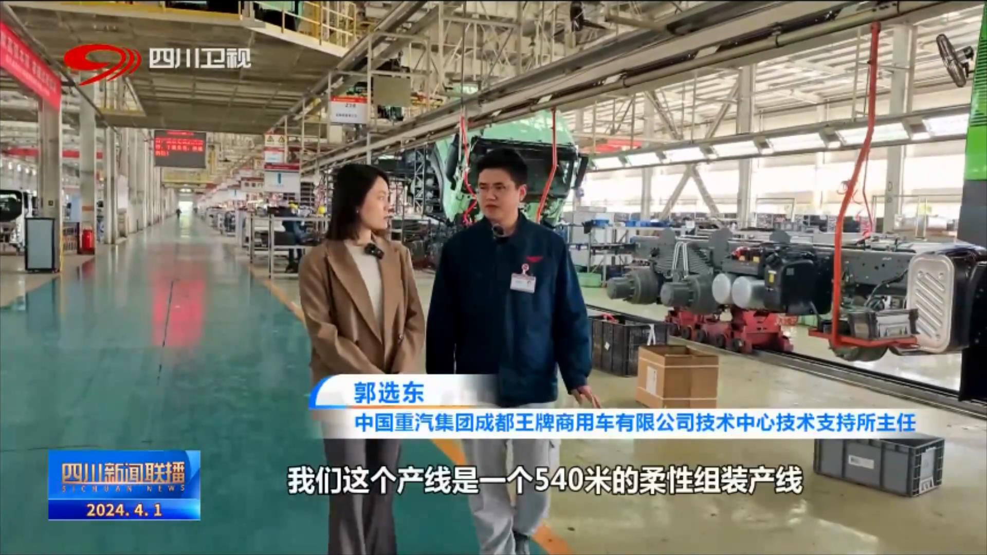 中国重汽集团成都王牌商用车有限公司技术中心技术支持所主任 郭选东:我们这个产线是一个540米的柔性组装产线,主要是考虑跟客户的订单化的定制需求来进行生产,目前我们可以根据智能制造系统 ,(这条产线上可以)对1000多个车型进行生产。