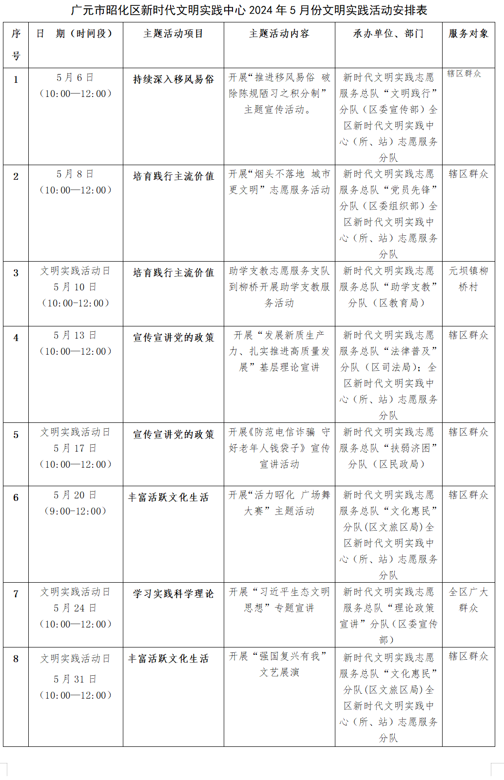 广元市昭化区新时代文明实践中心2024年5月份文明实践活动安排表